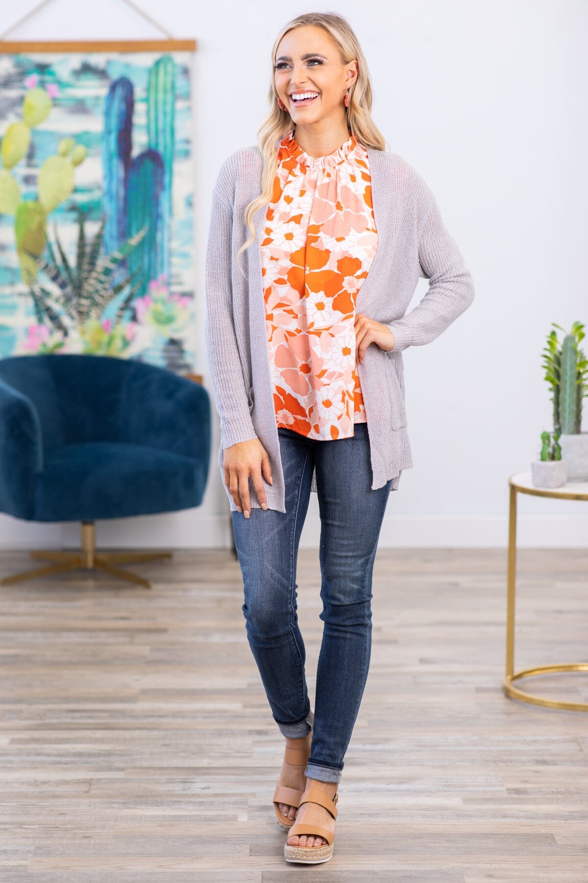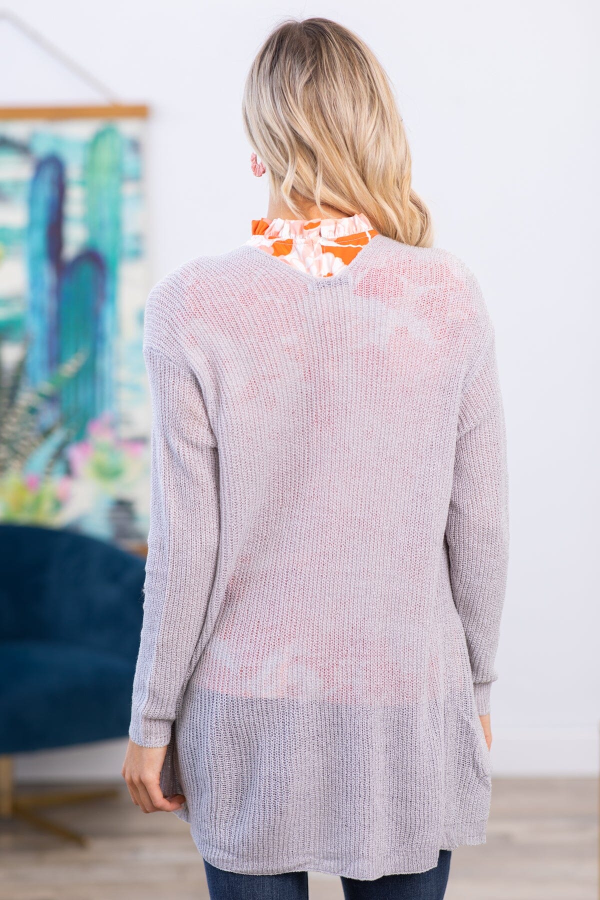 Light Grey Mid Length Cardigan With Pockets