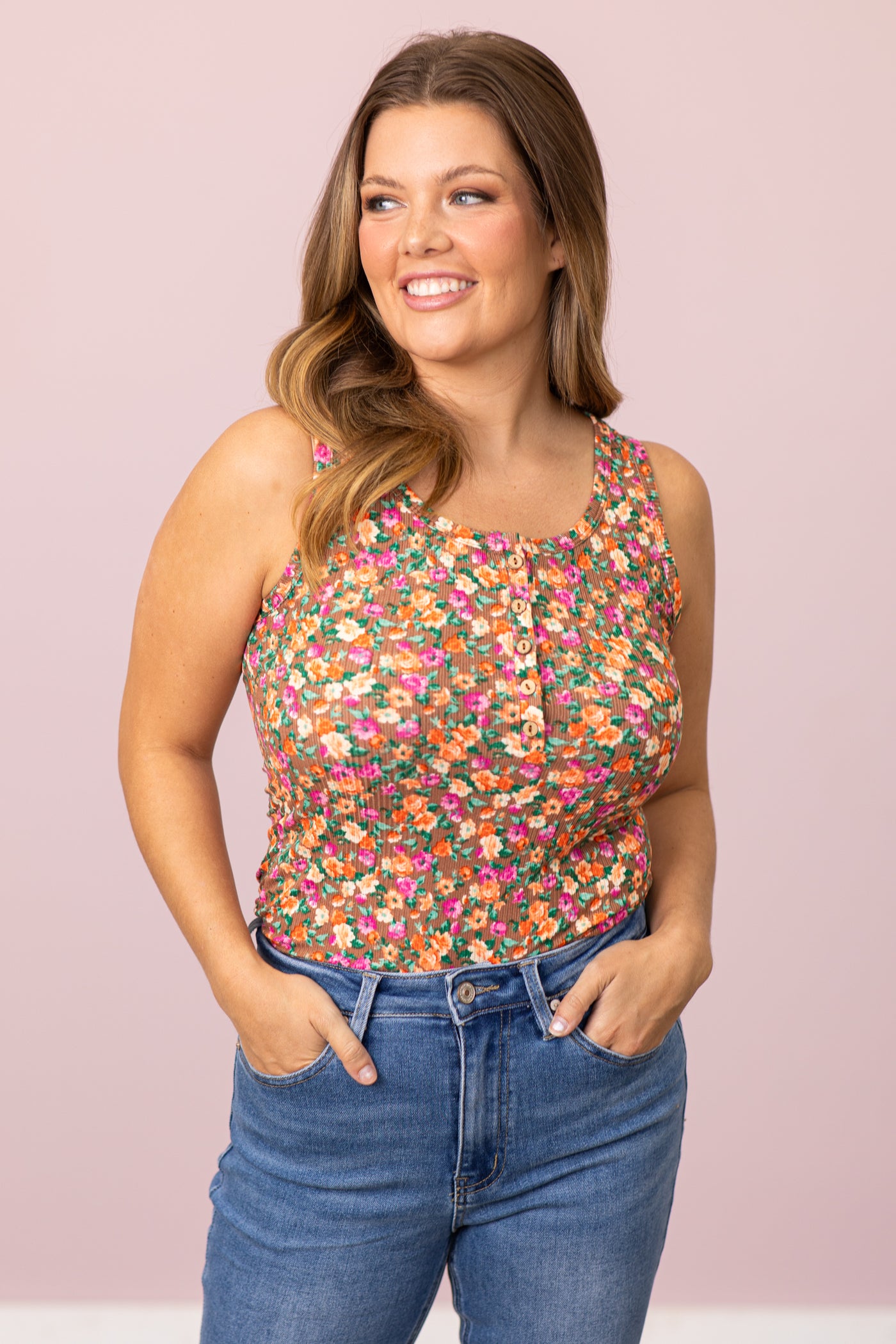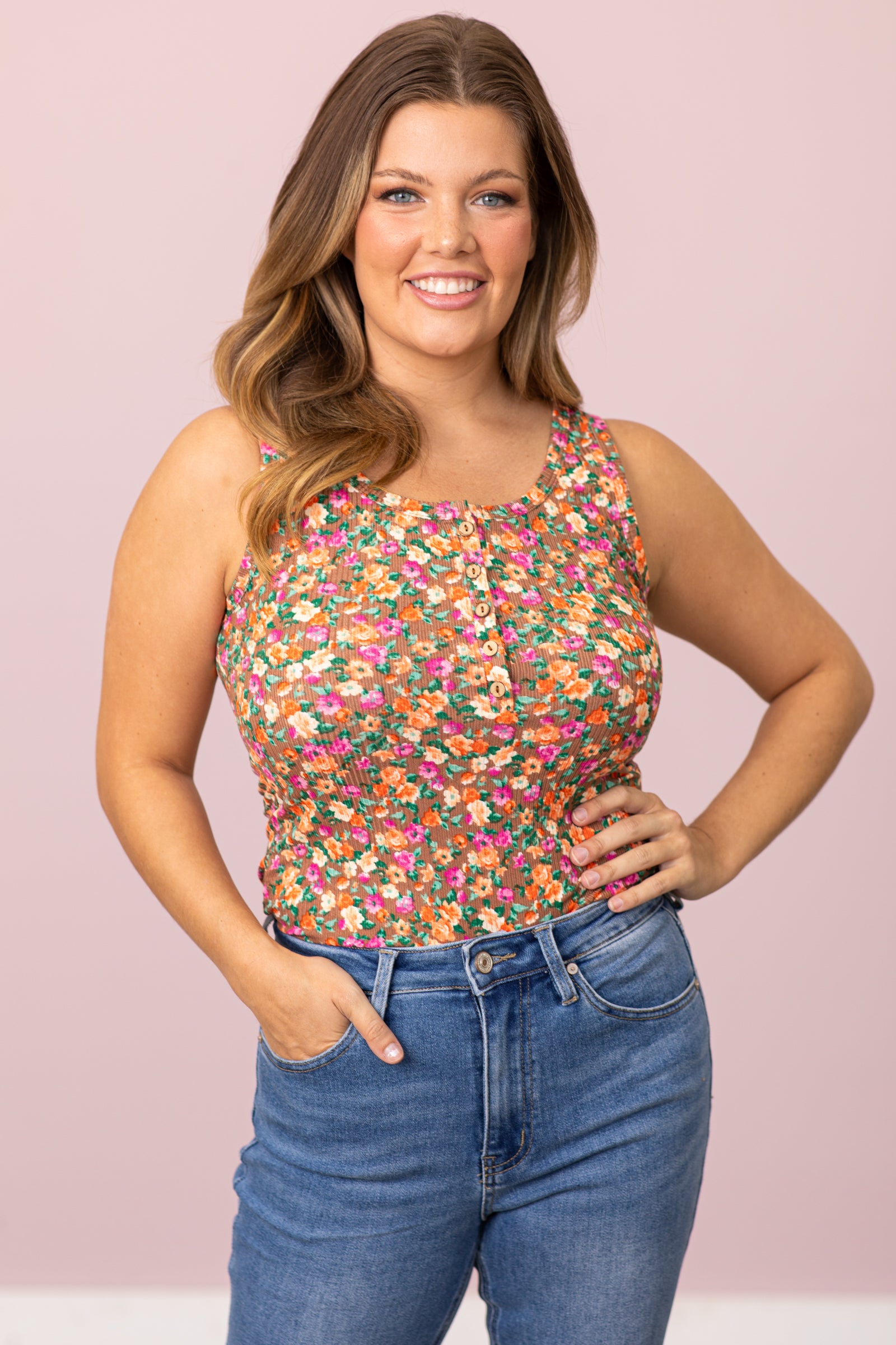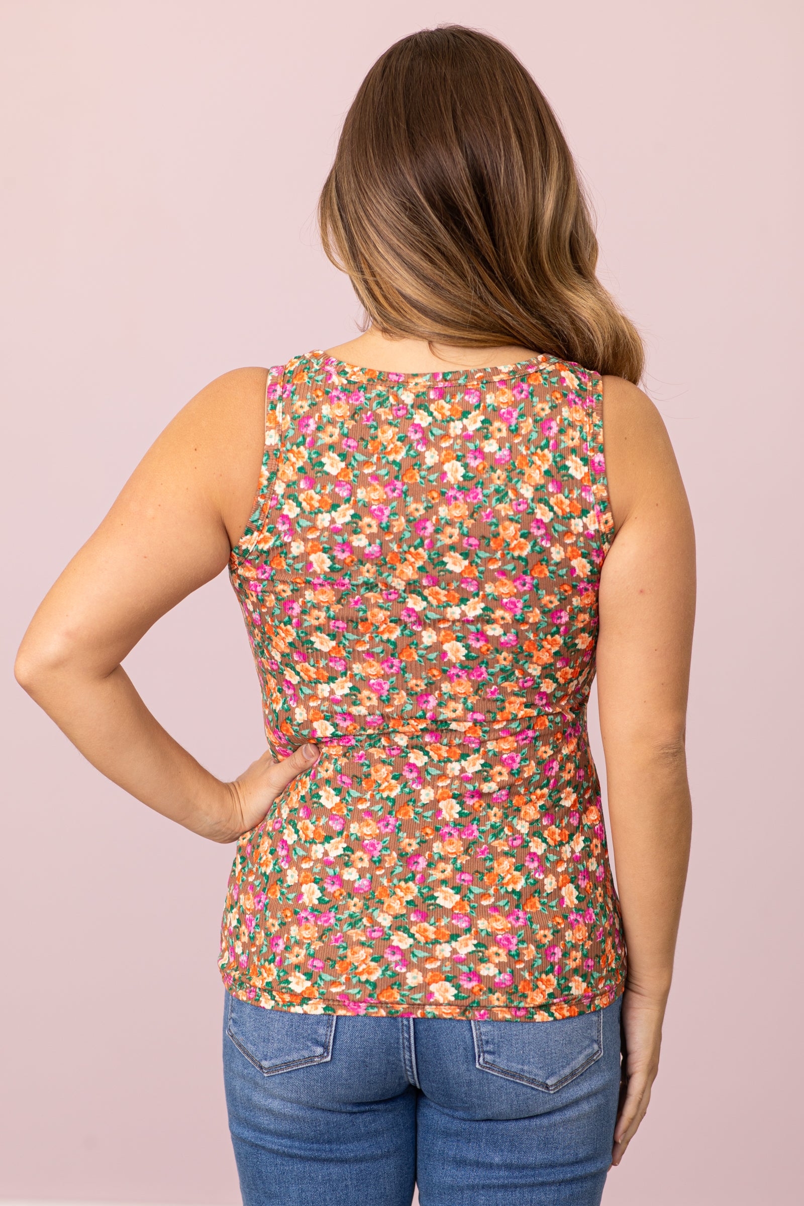 Taupe Multicolor Floral Print Tank