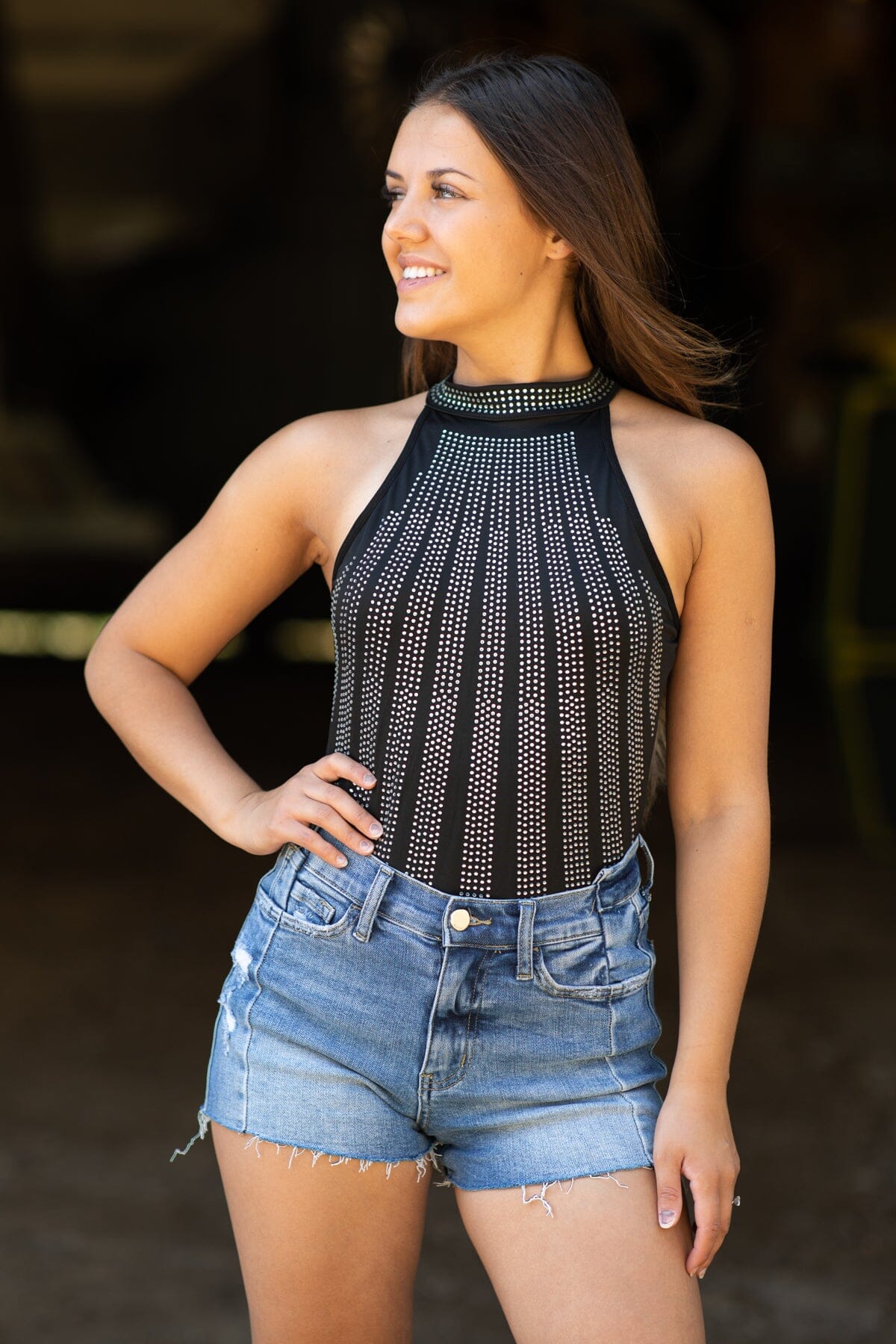 Perfect stunning top.. would prefer if the rhinestones went further down so the black lining didnโt show.