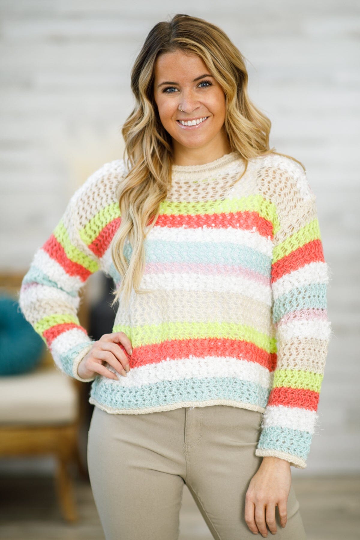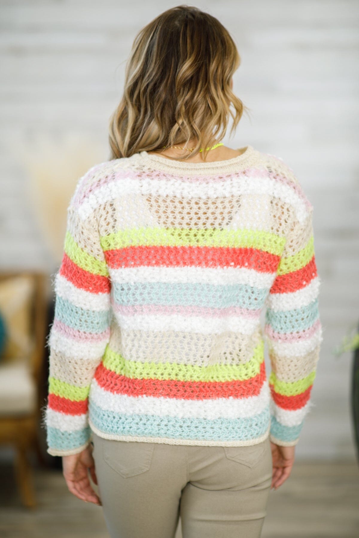 Such a pretty sweater, open knit. Snags super easy. But the colors are beautiful.