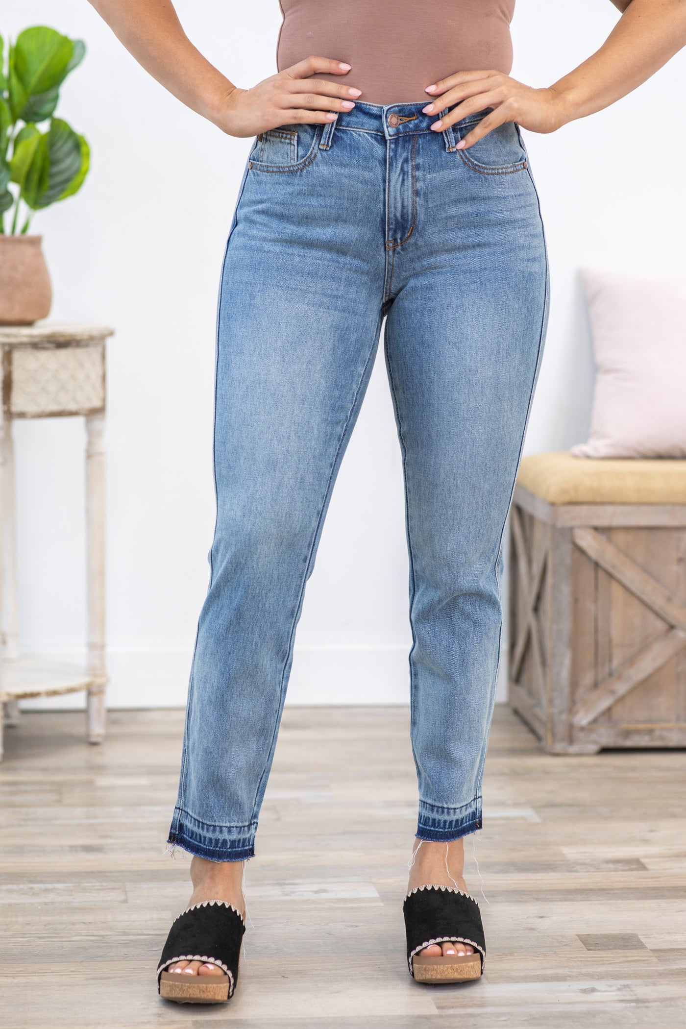 While the color and style are super cute these jeans are not typical of Judy Blue. I followed the size recommendations for this pair and sized up 1 from my typical Judy Blue size but this caused the pant to be extremely large in the waist. The fabric content is very different. The front is that of a stiff traditional denim and the back is soft and stretchy like a traditional Judy Blue. I returned the item because they started out loose and was concerned that the fabric would continue to stretch during wear.