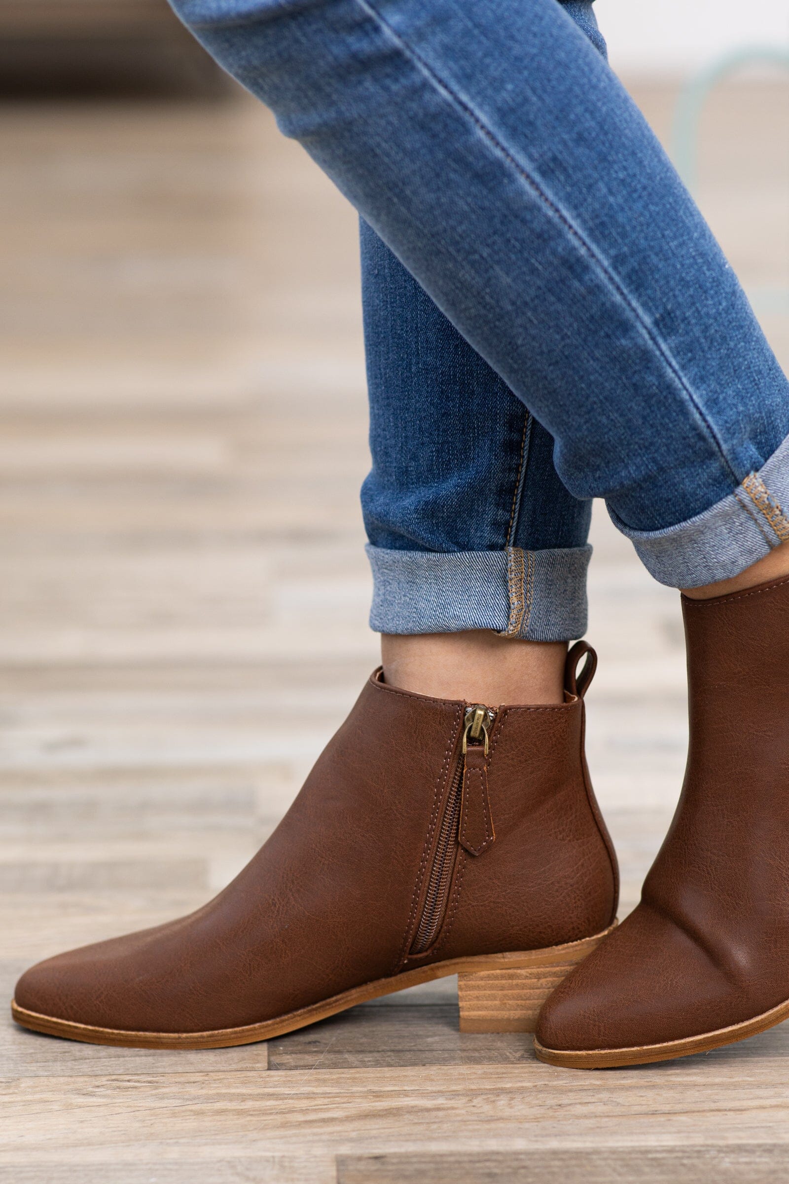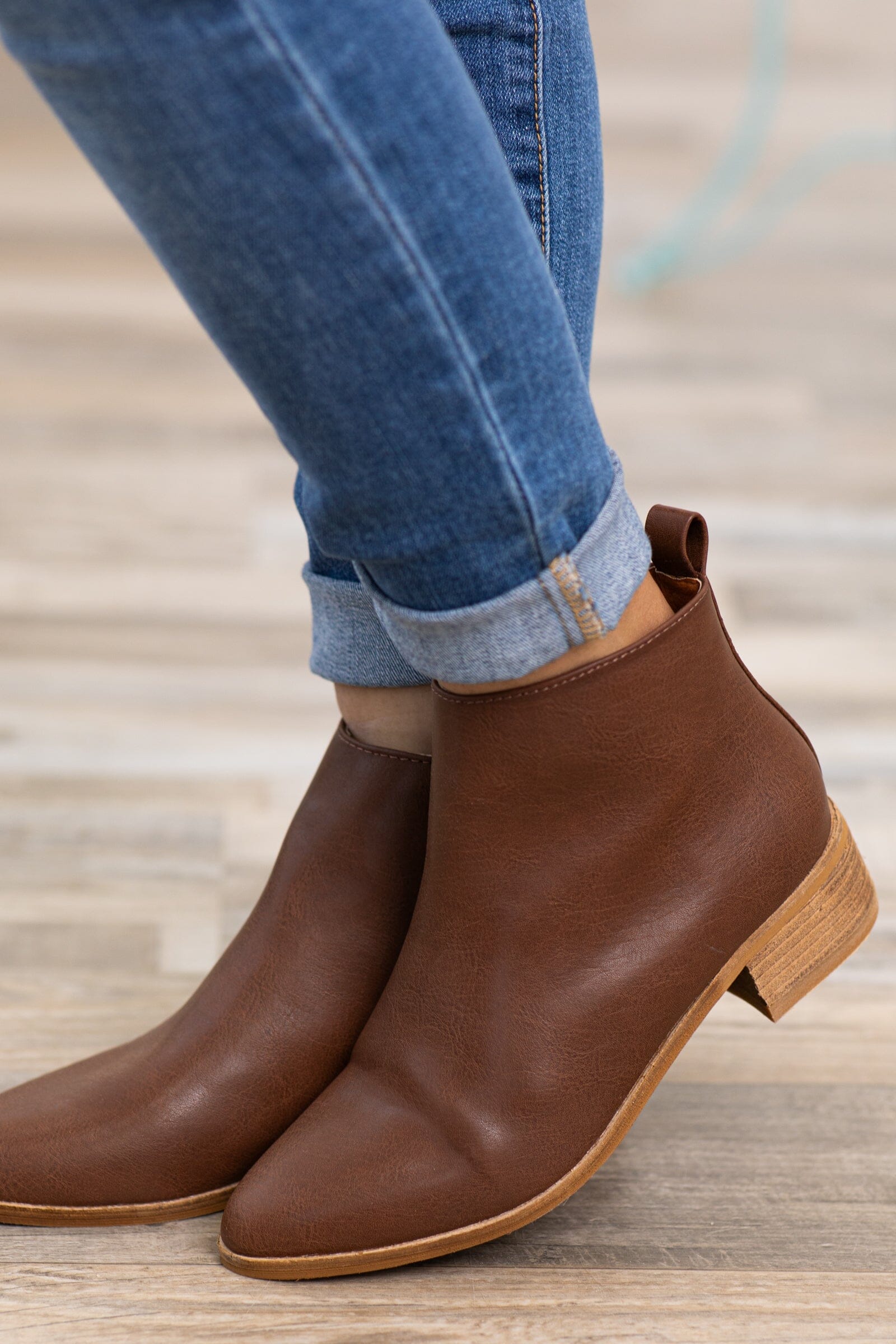 Brown Ankle Bootie With Pull Tab