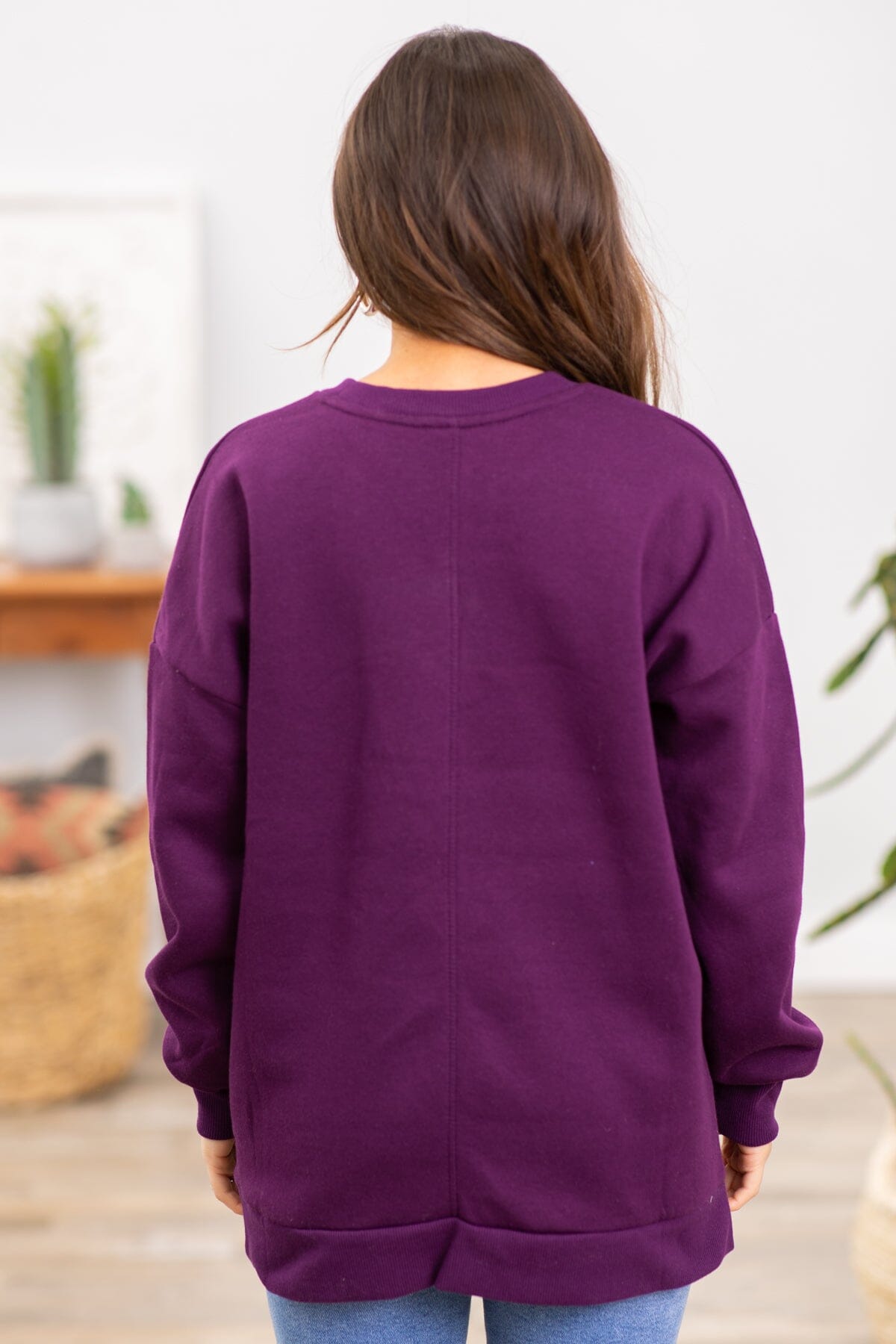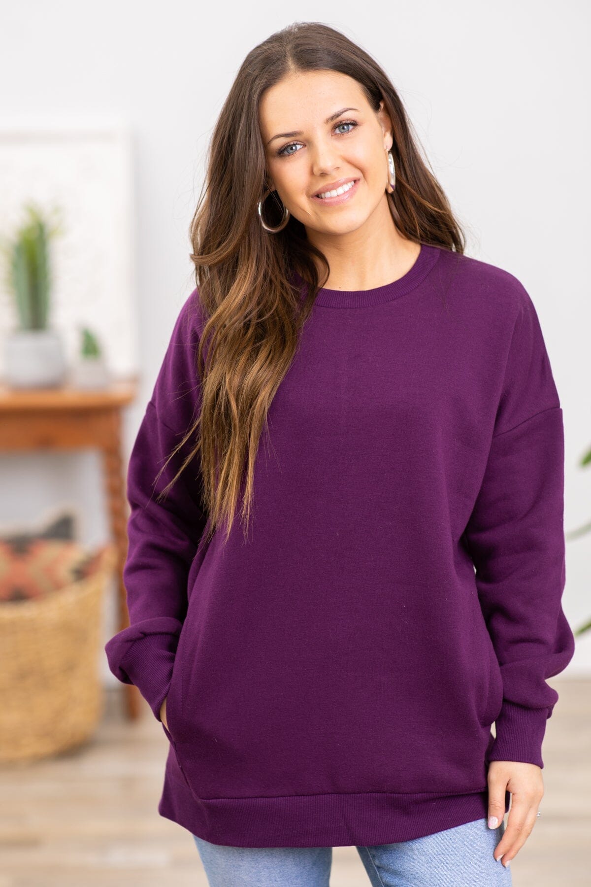 Eggplant Crew Neck Sweatshirt With Pockets