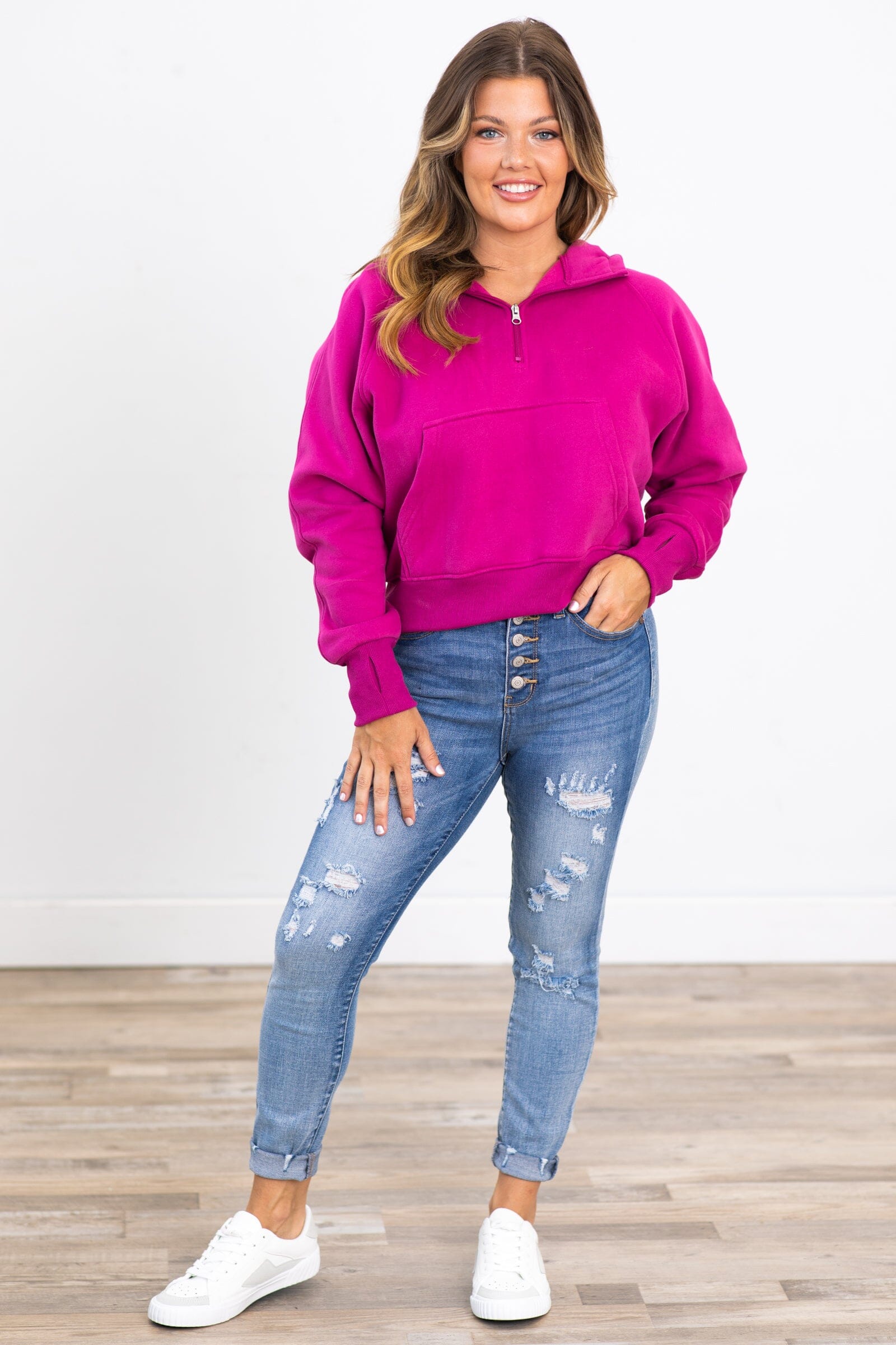 The cranberry sweatshirt was not as bright a color as the picture shows-I was disappointed-just looks like an old sweatshirt-dull color