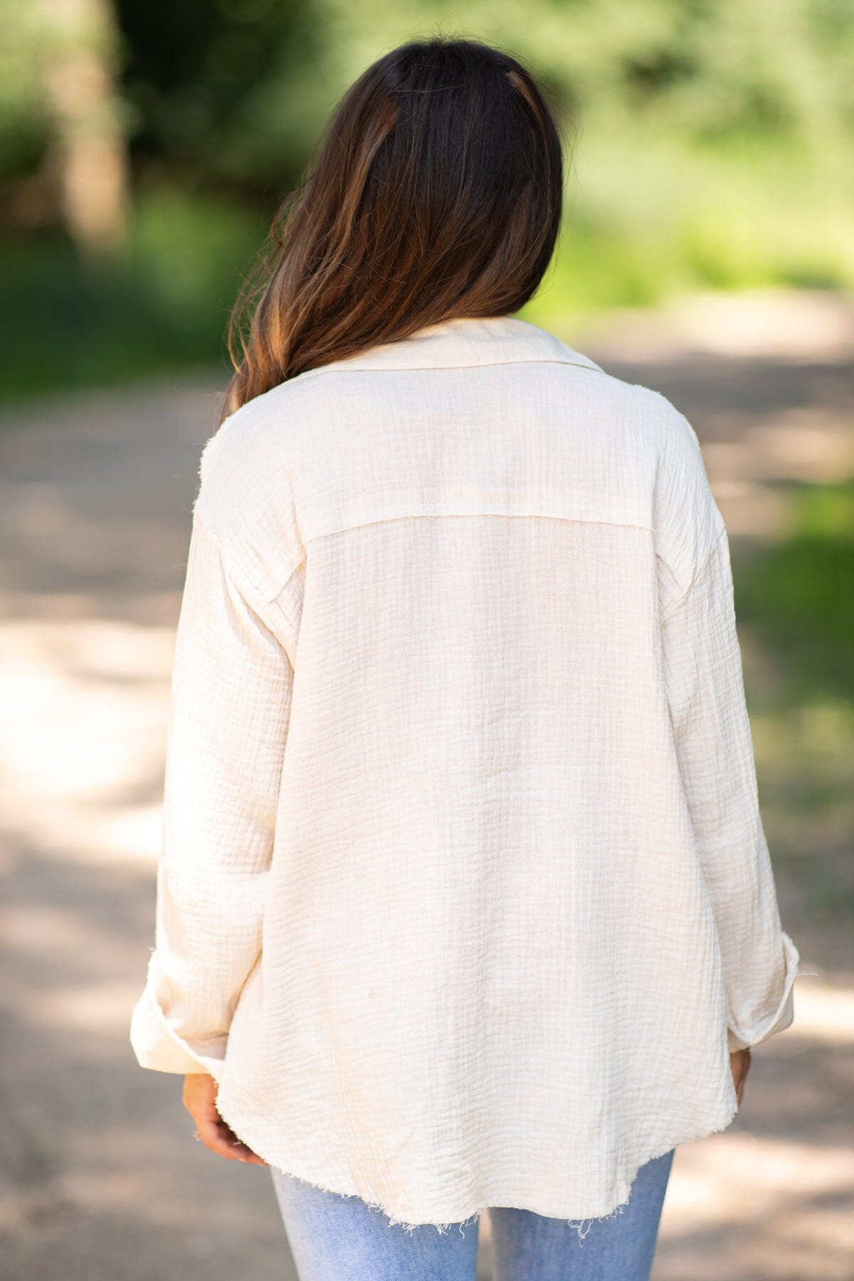 Beige Gauze Textured Button Up Top