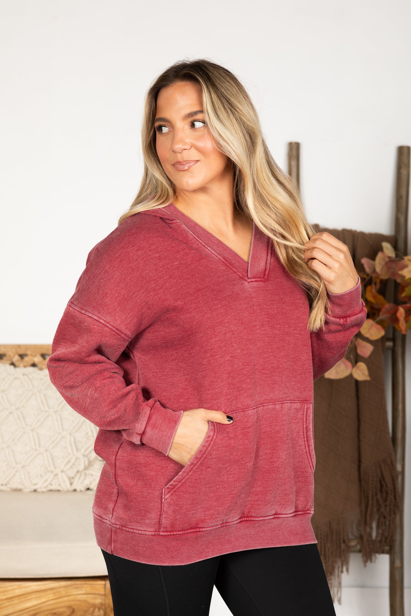 Best hoodie I have ever had!! I LOVE the v-neck! I love hoodies but hate that they almost choke you, and this one is perfect! I cannot wait for the restock! I want one in every color!!!