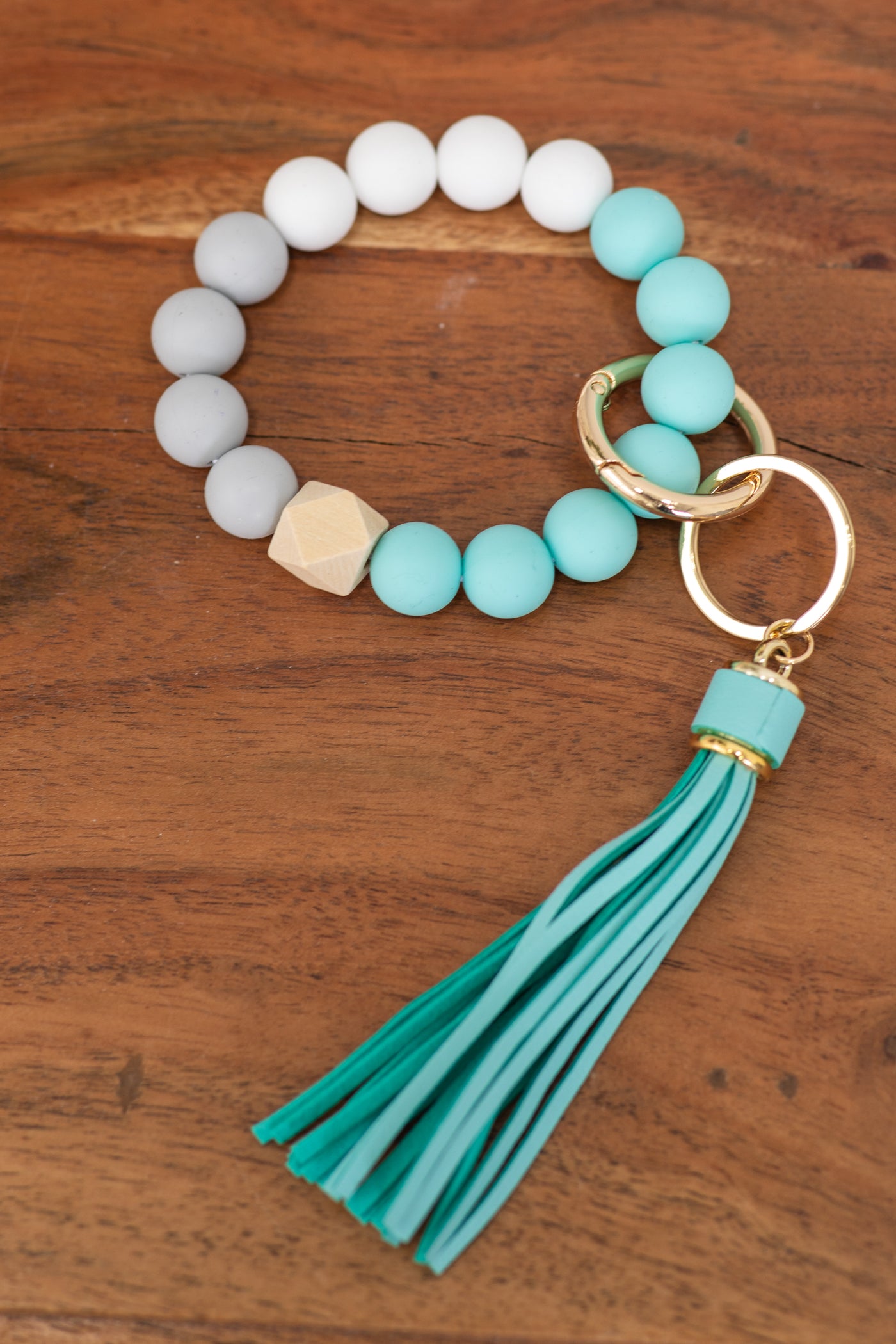 • Other Details: Soft rubbery silicone beads with stretchable elastic cord, suede tassel and gold key clip