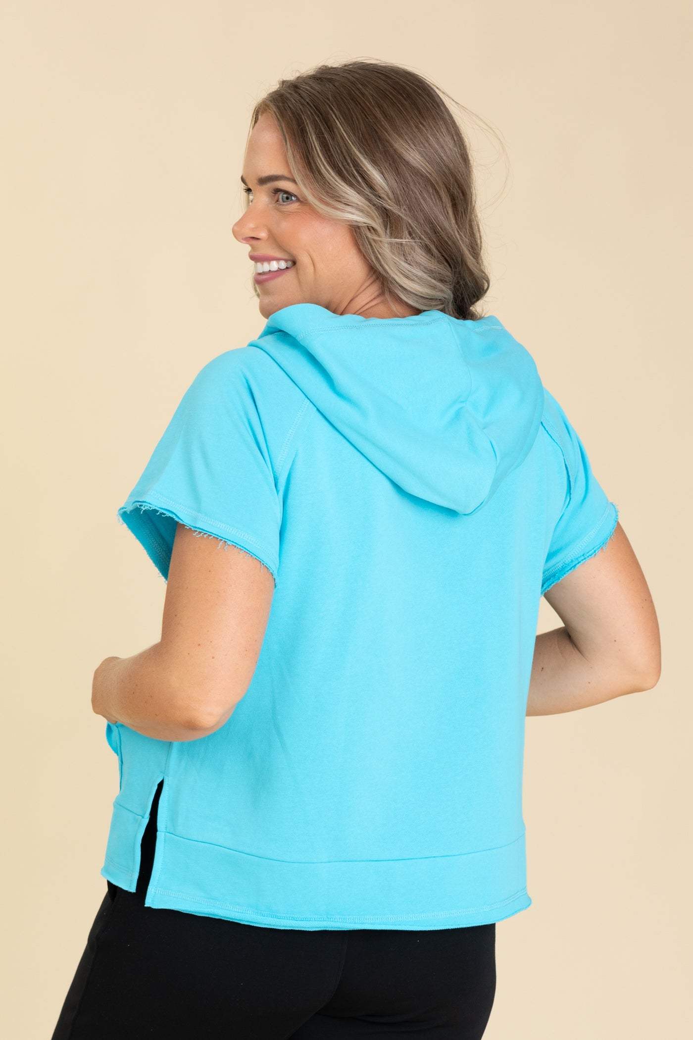 Baby Blue Hoodie Drawstring Short Sleeve Top