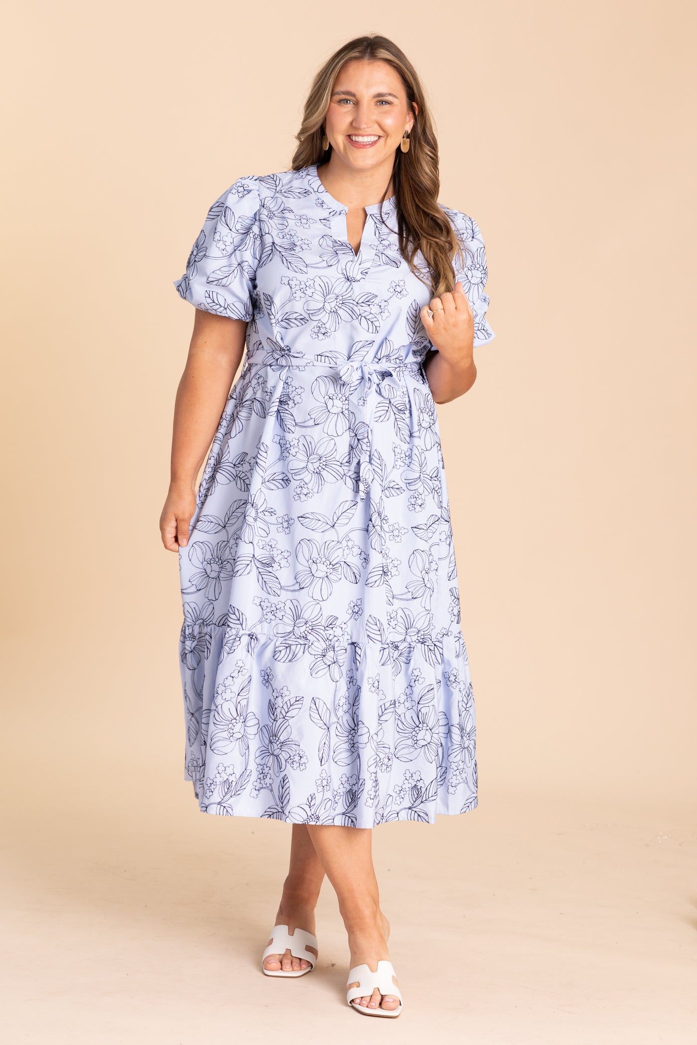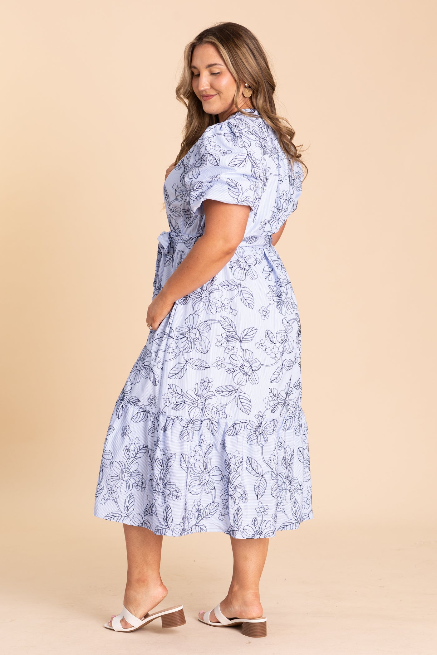 Baby Blue With Navy Floral Print Midi Dress