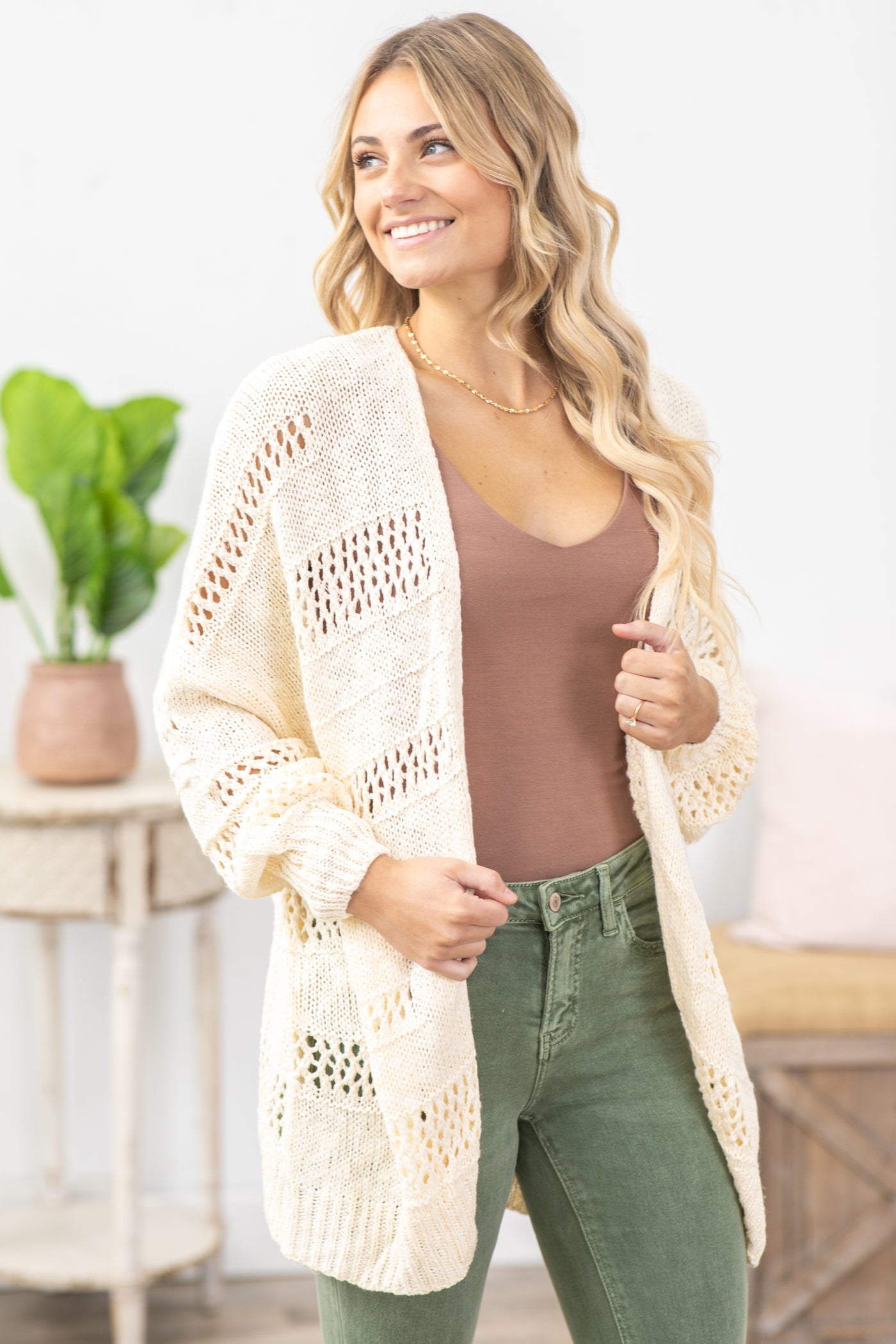 Beige Casual Hollowed Dolman Sleeve Cardigan