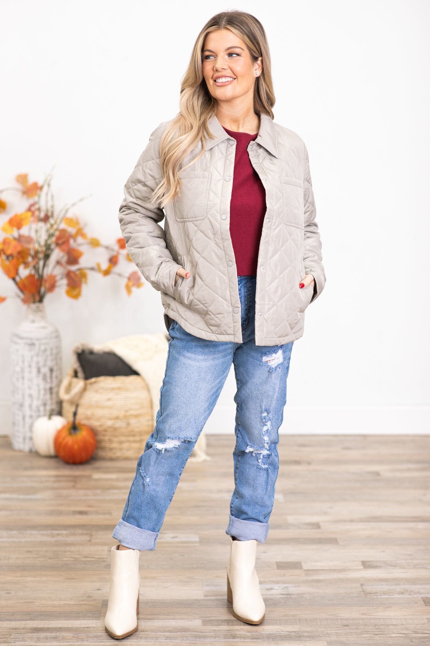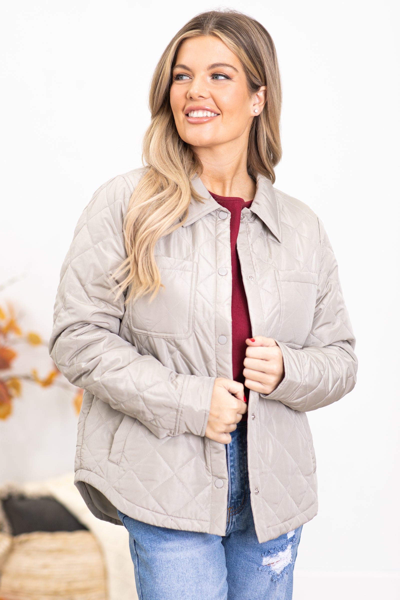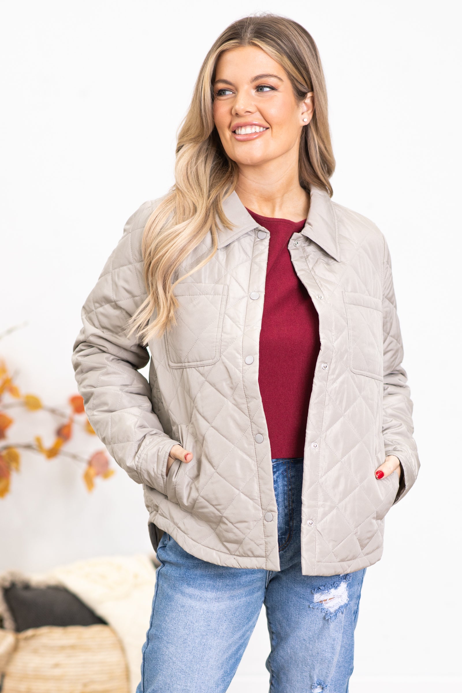 Beige Diamond Quilted Jacket