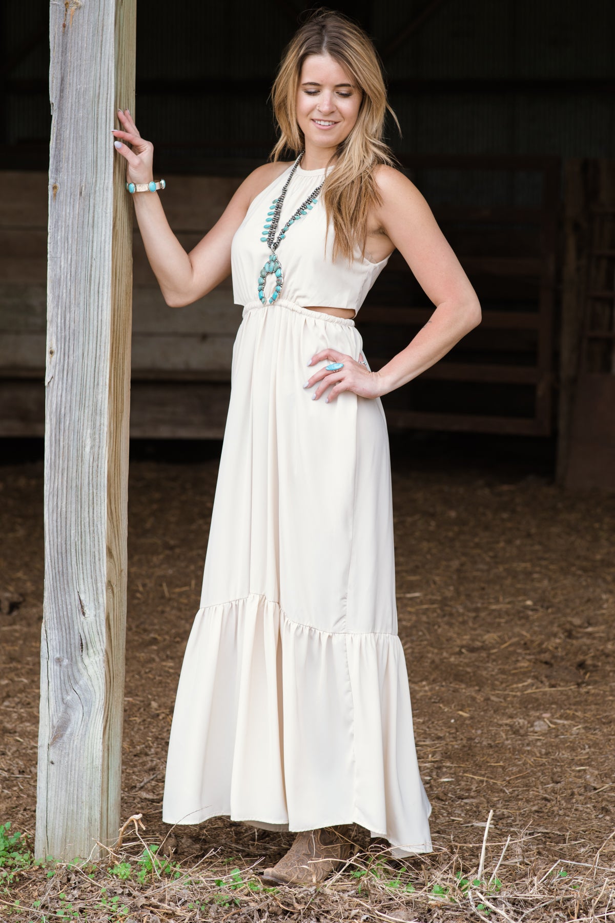 The cord around the waistline has absolutely zero give to it. Could not get it over chest or butt to even get the dress on. The fabric was a pretty color and had nice texture to it.