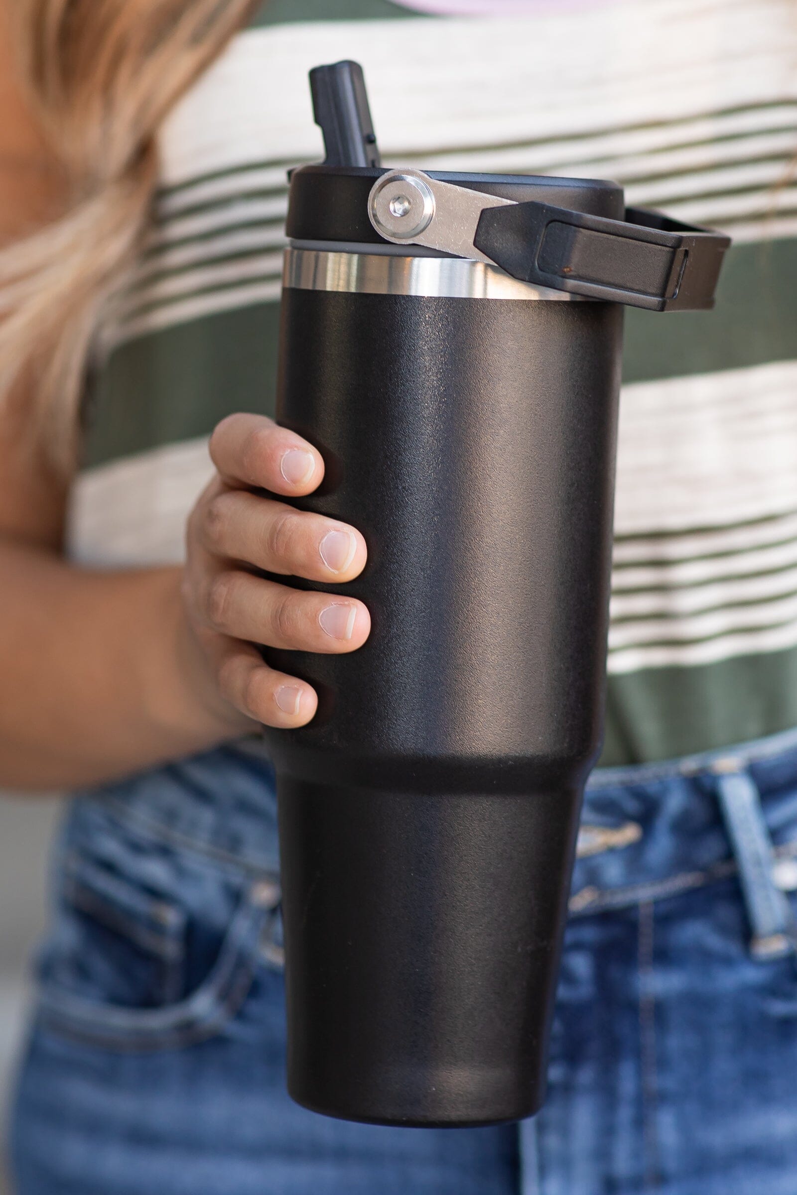 Black 30oz Flip Straw Tumbler