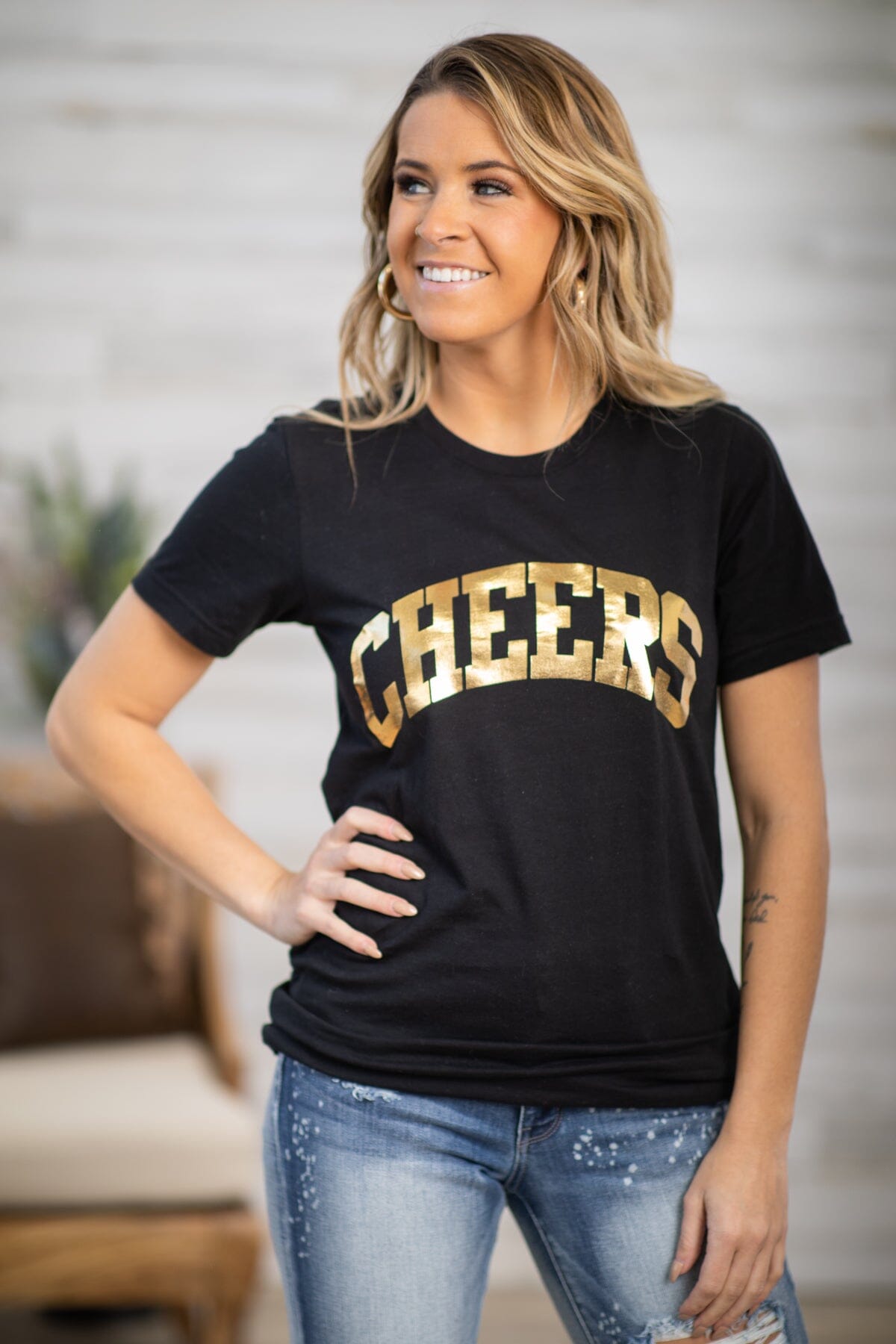 Black and Gold Cheers Graphic Tee