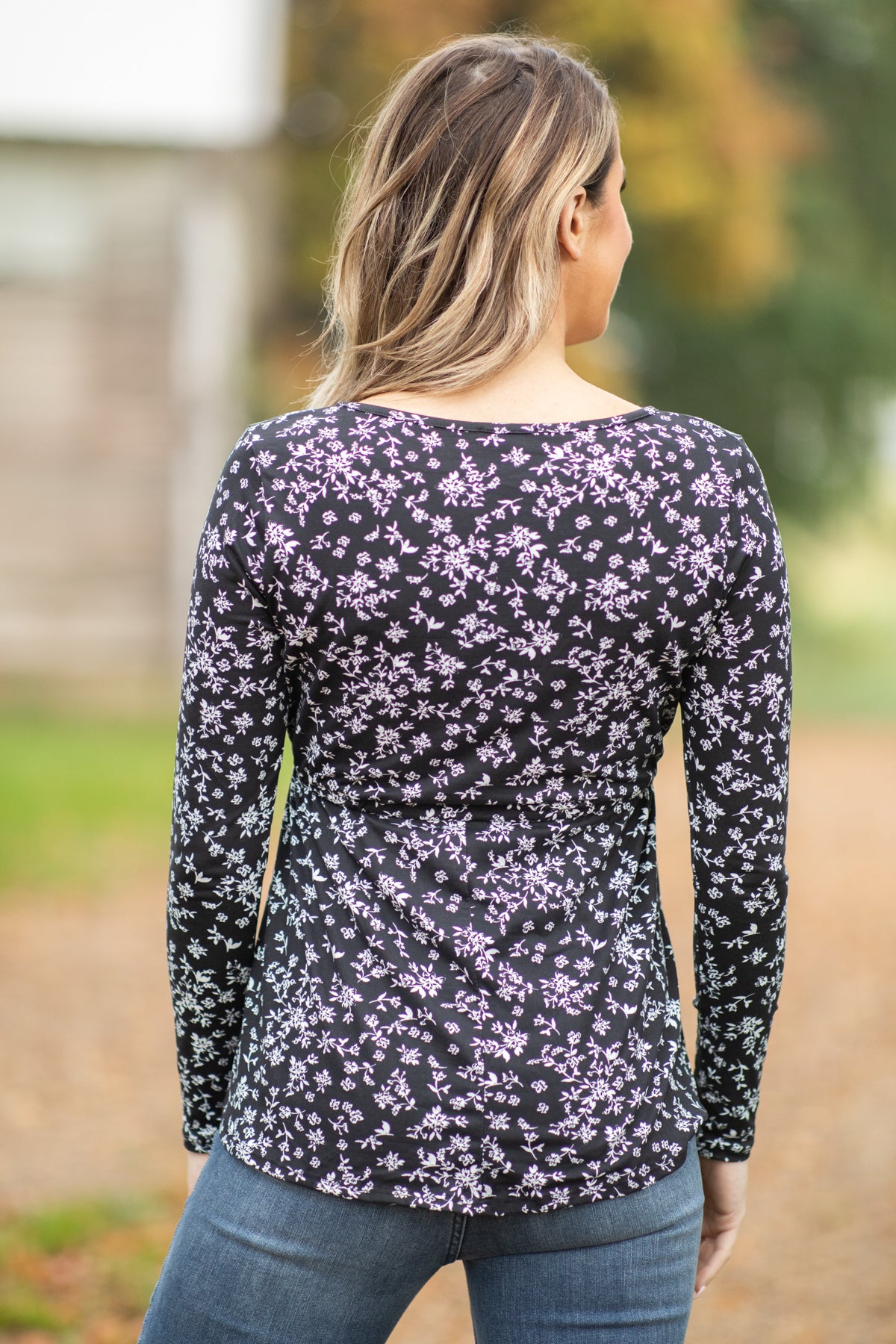 Black and White Tie Waist Floral Print Top