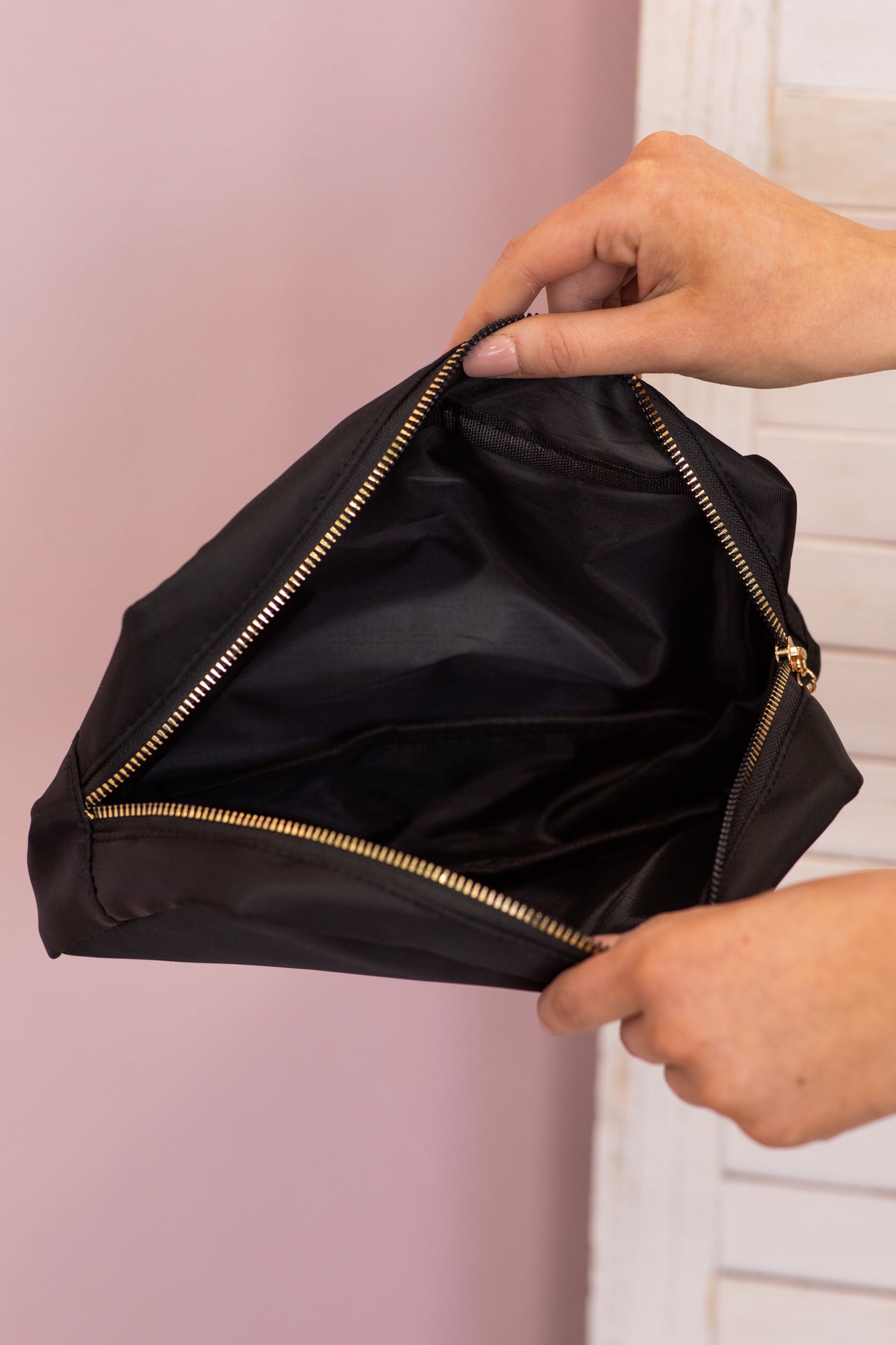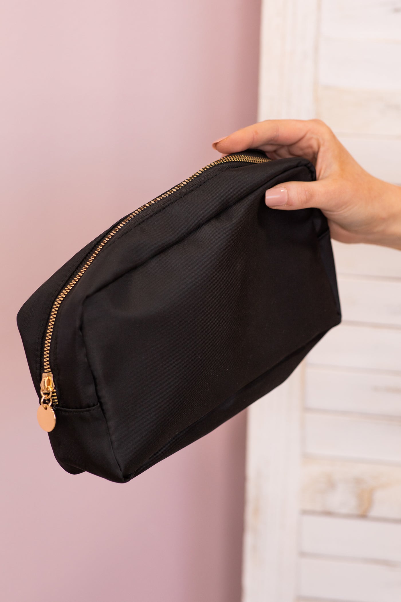• Other Details: Cosmetic Makeup Pouch Bag with Gold Plated Zipper Closure