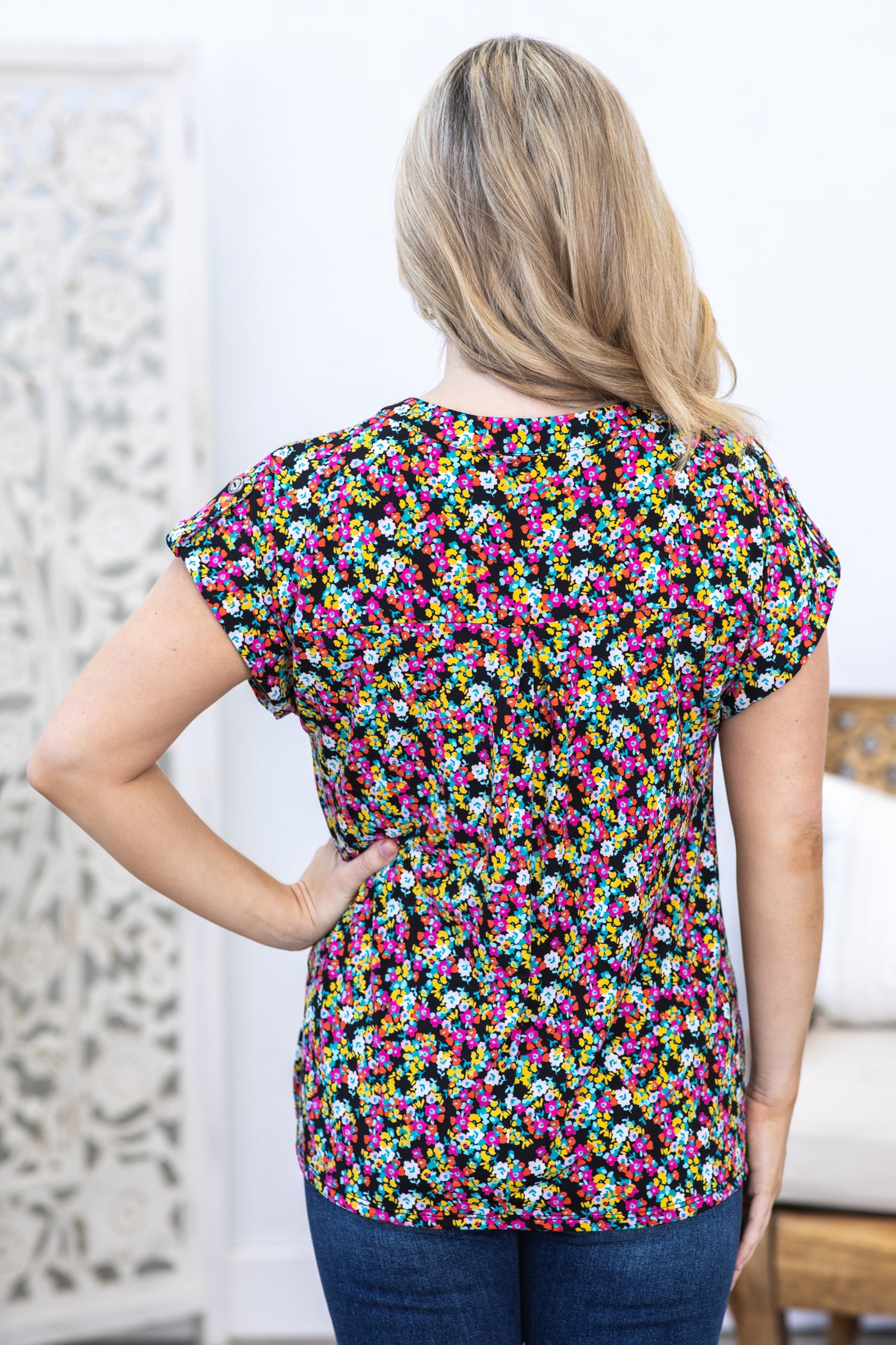 Black Ditsy Floral Wrinkle Free Lizzy Top