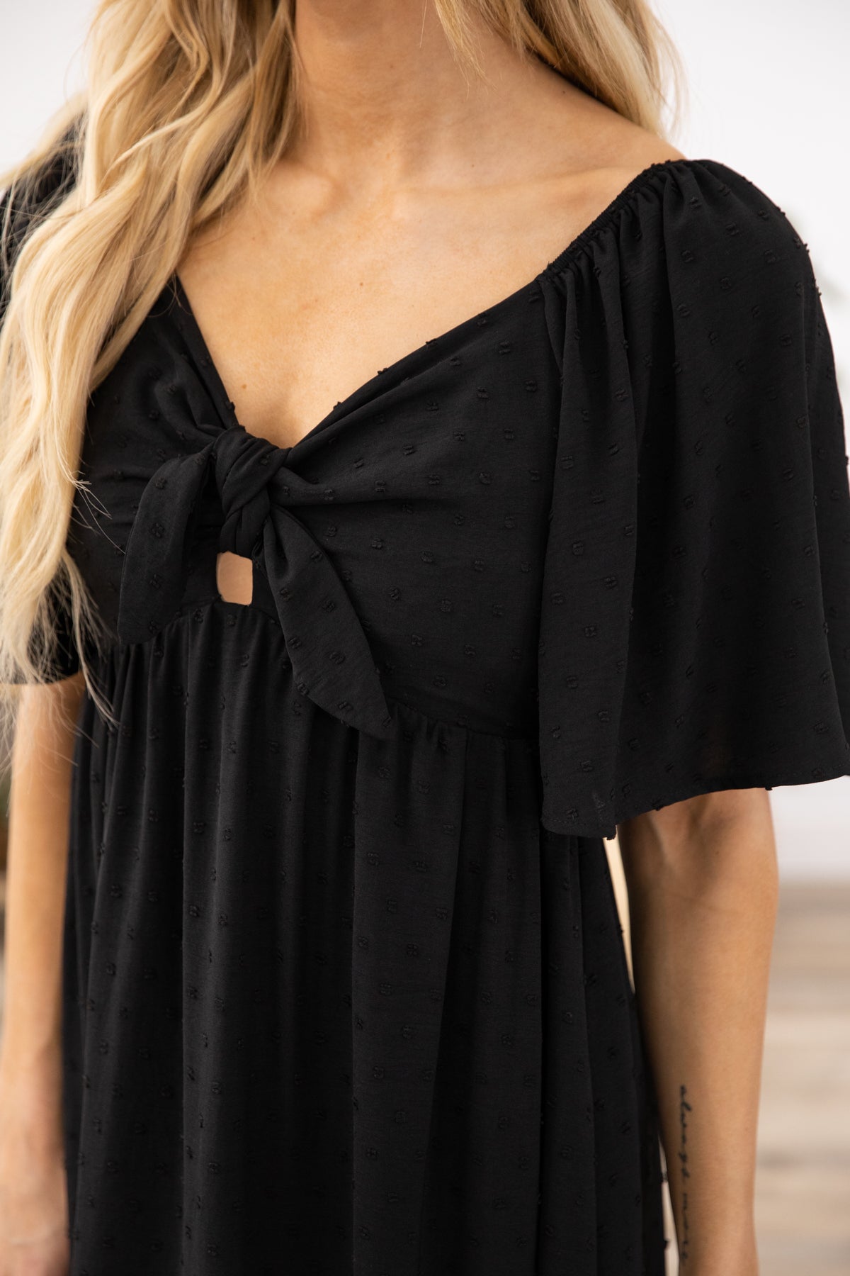 This is a great dress for many occasions. I wore it to a rehearsal dinner. The tie detail is beautiful and it is a very flattering dress.