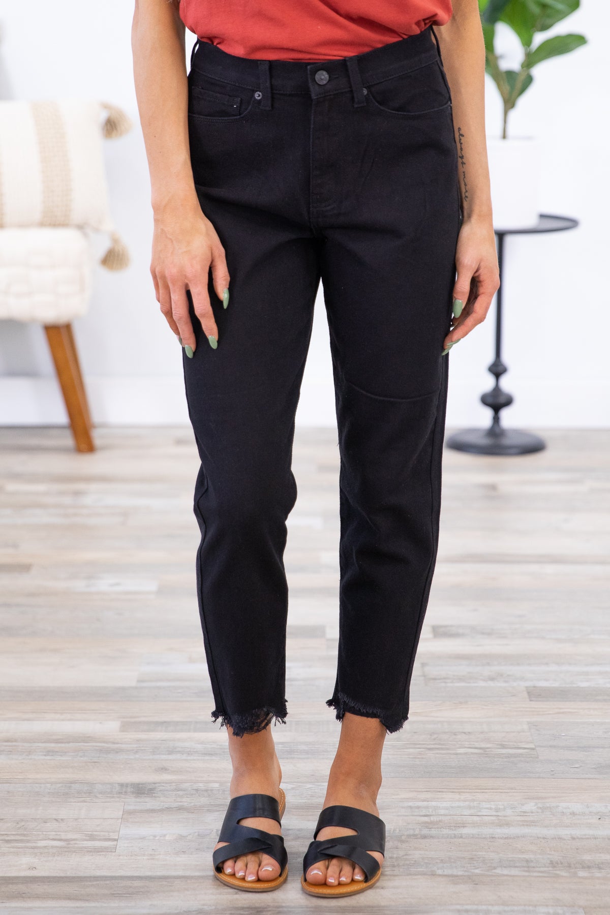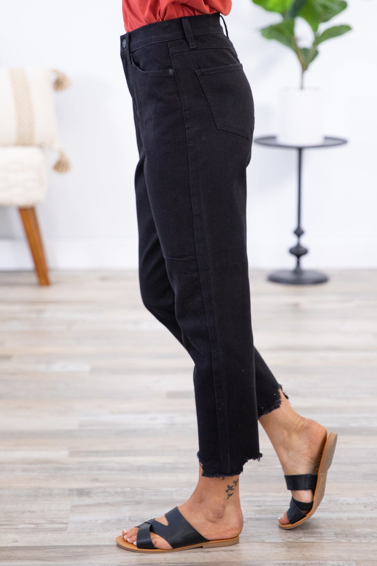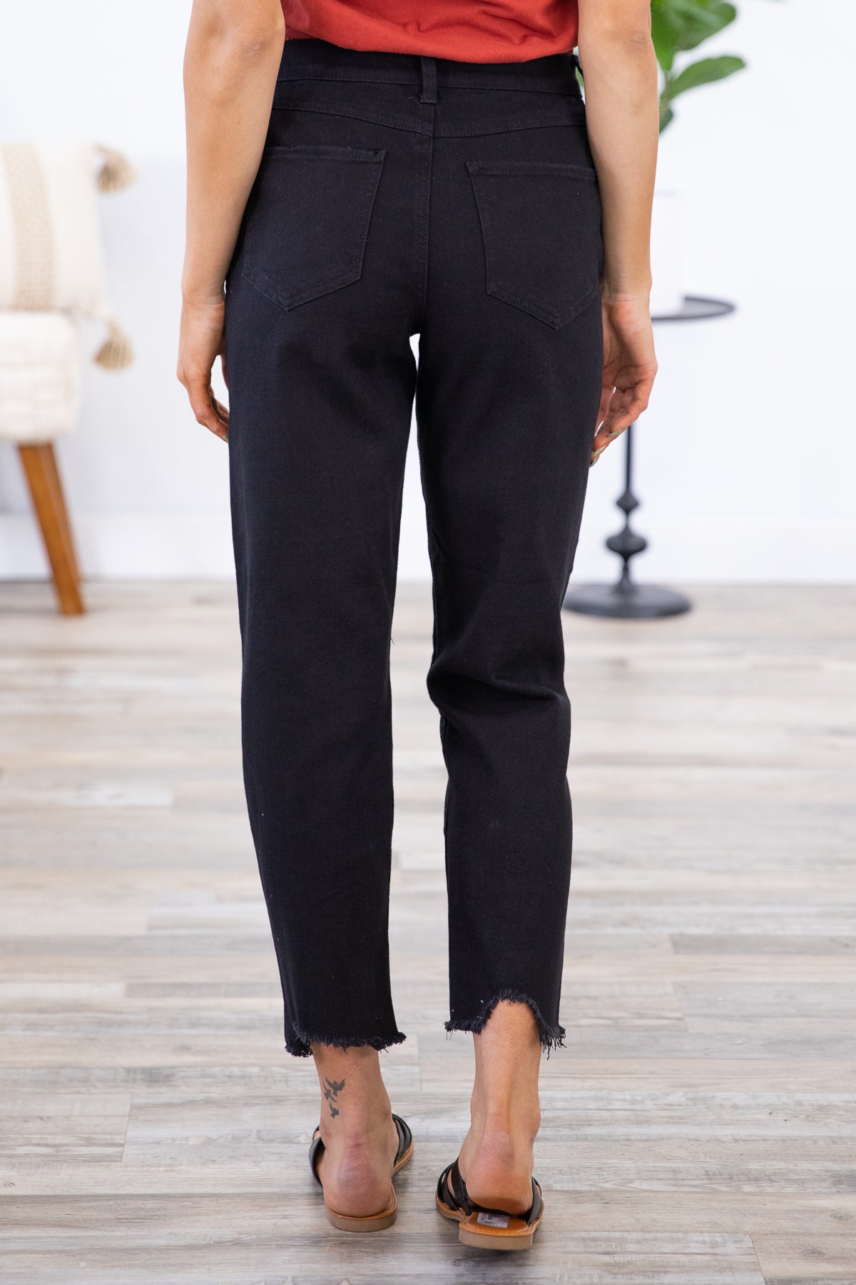 Black Raw Hem Relaxed Fit Jeans