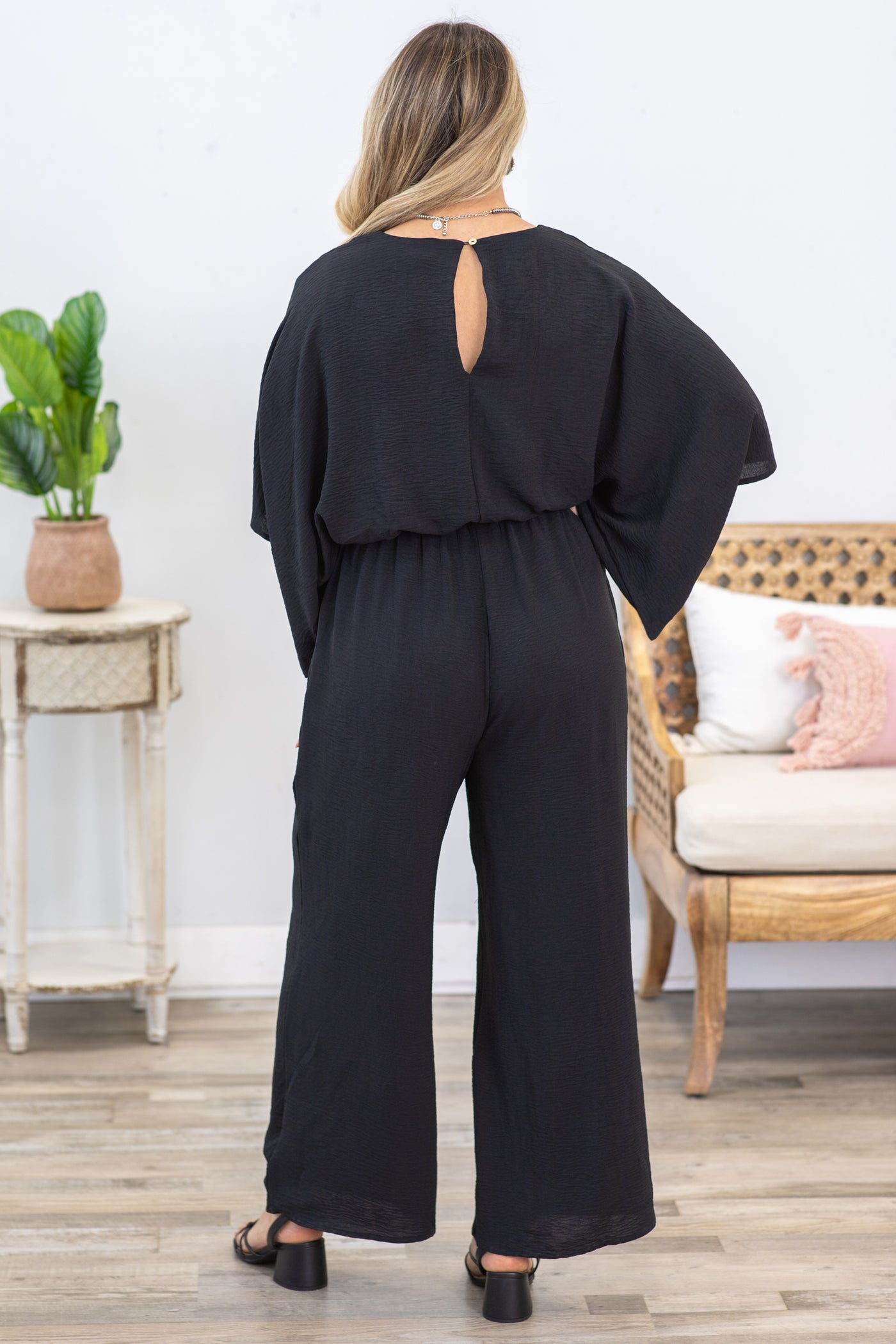 Black Solid Dolman Sleeve Woven Jumpsuit