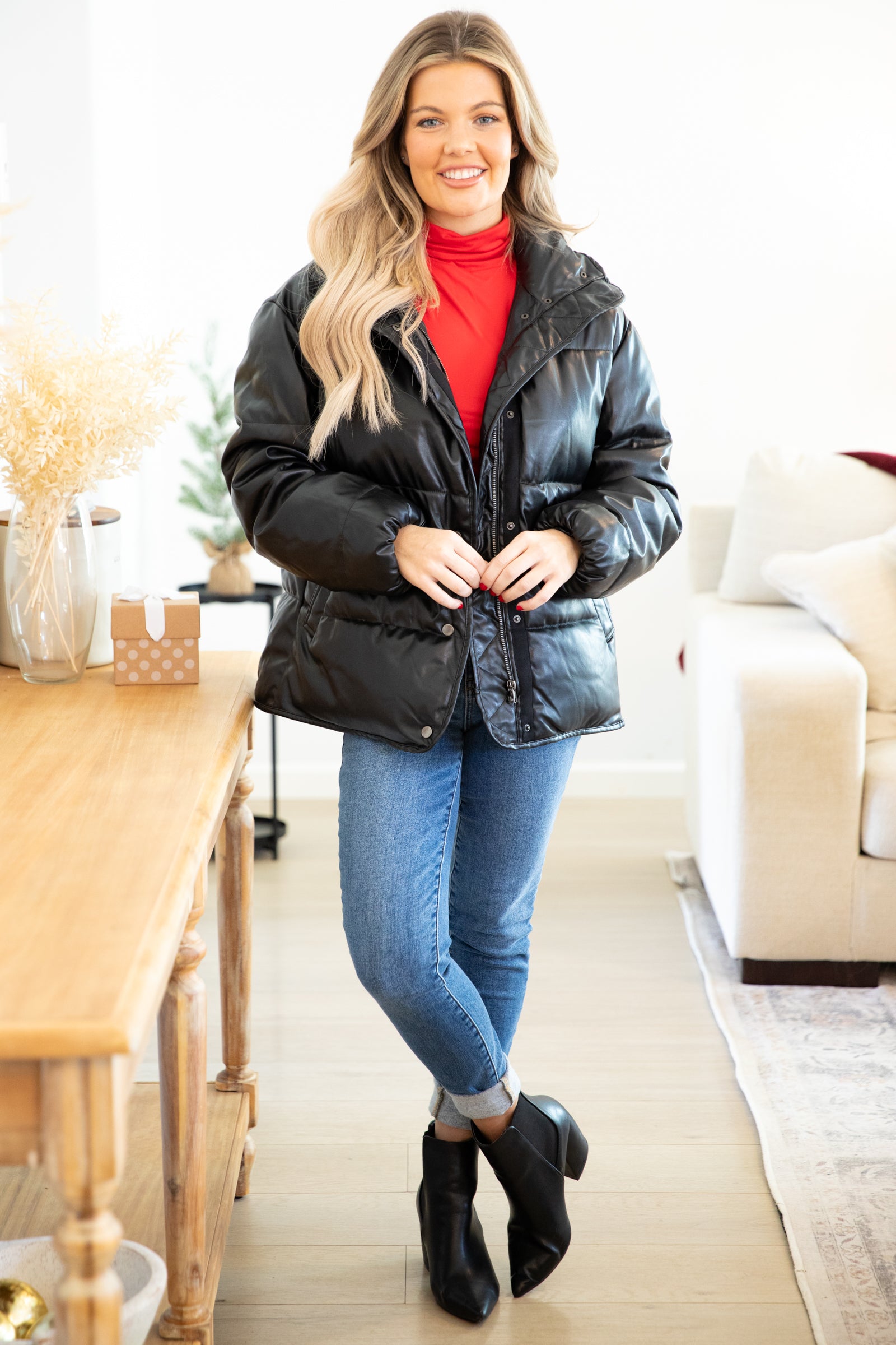 Black Vegan Leather Puffer Jacket