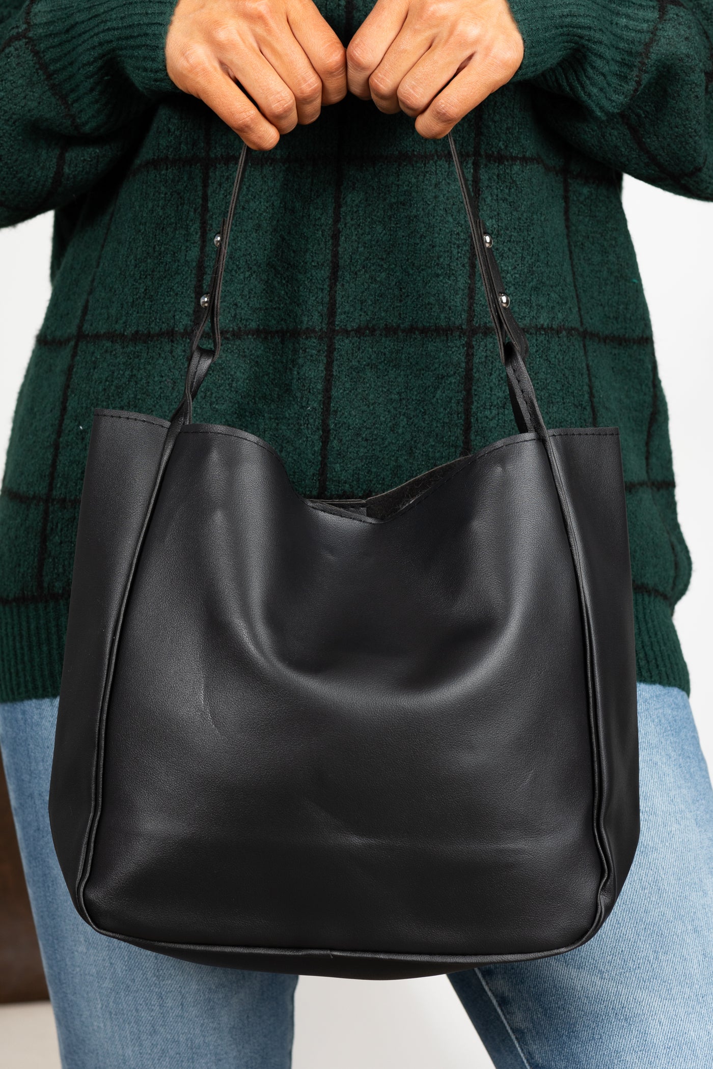 Black Vegan Leather Snap Closure Shoulder Bag