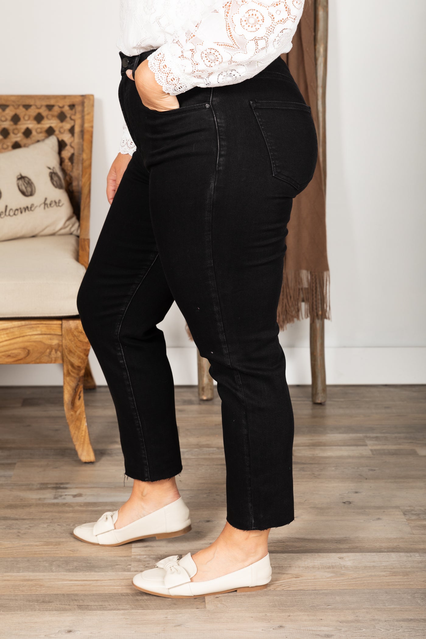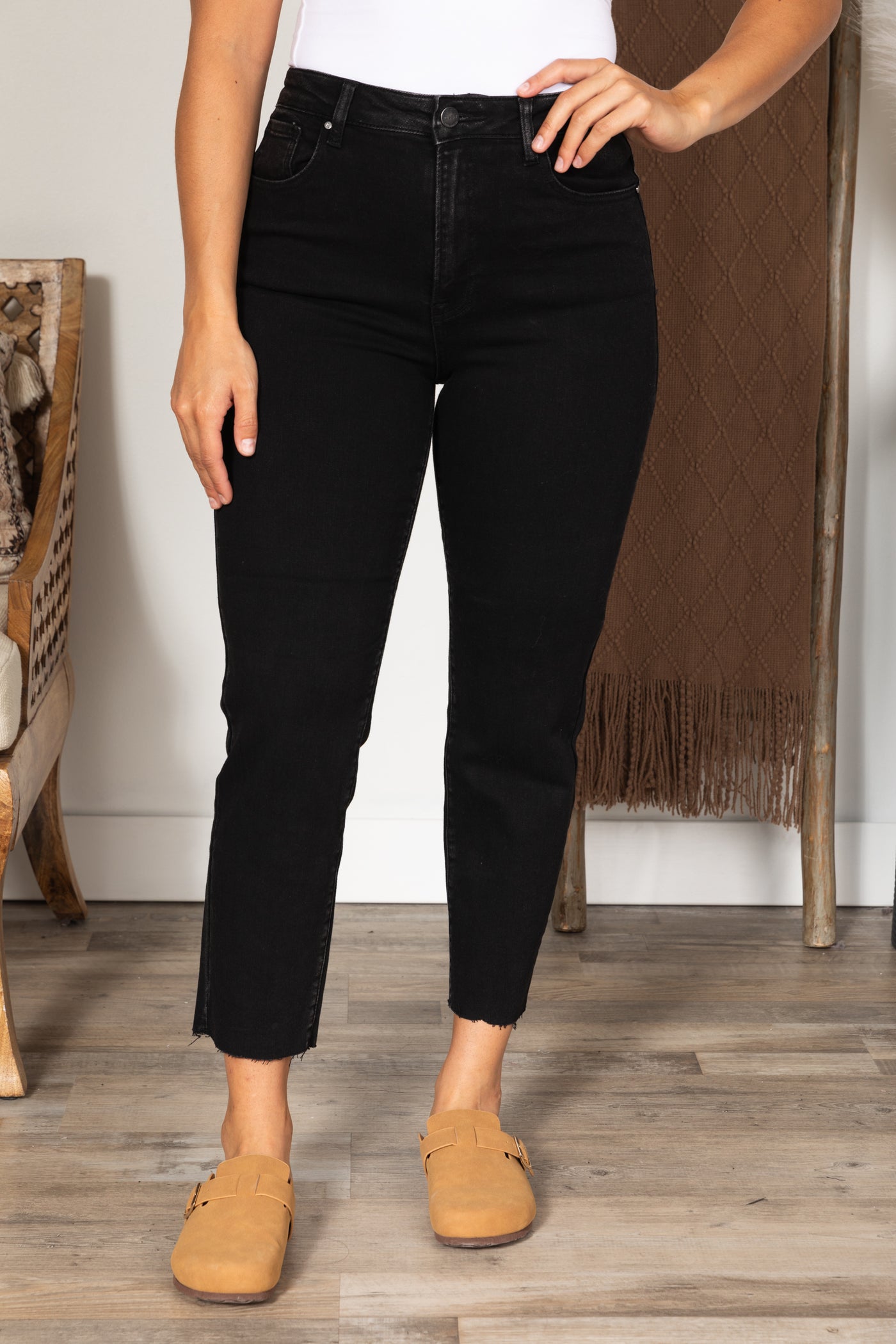 Black Washed High Rise Mom Fit Jeans
