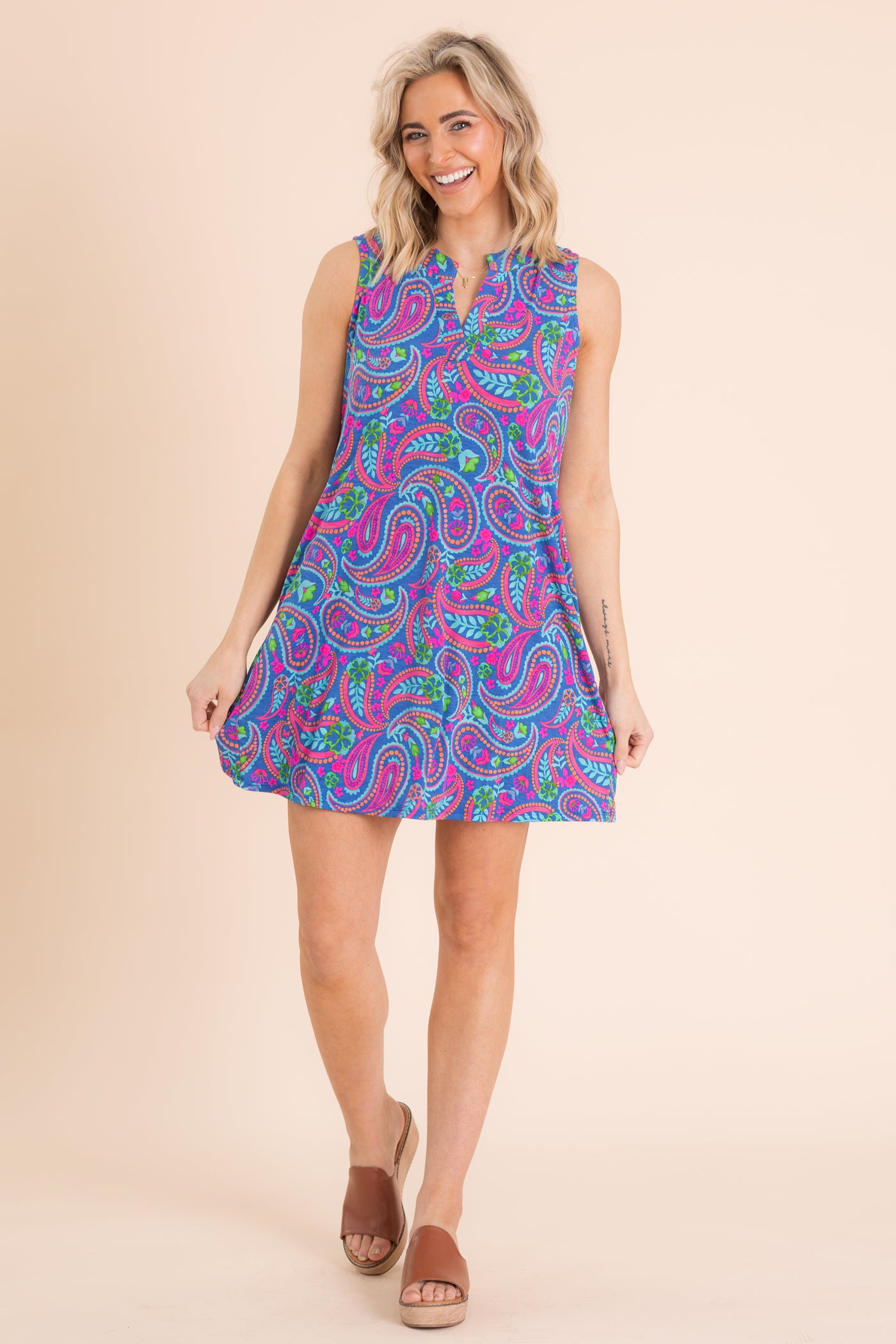 DS always comes through with the best patterns. This dress is more vibrant in person! It reminds me of Anna from"Frozen". Cute, comfortable and perfect for those summer days.