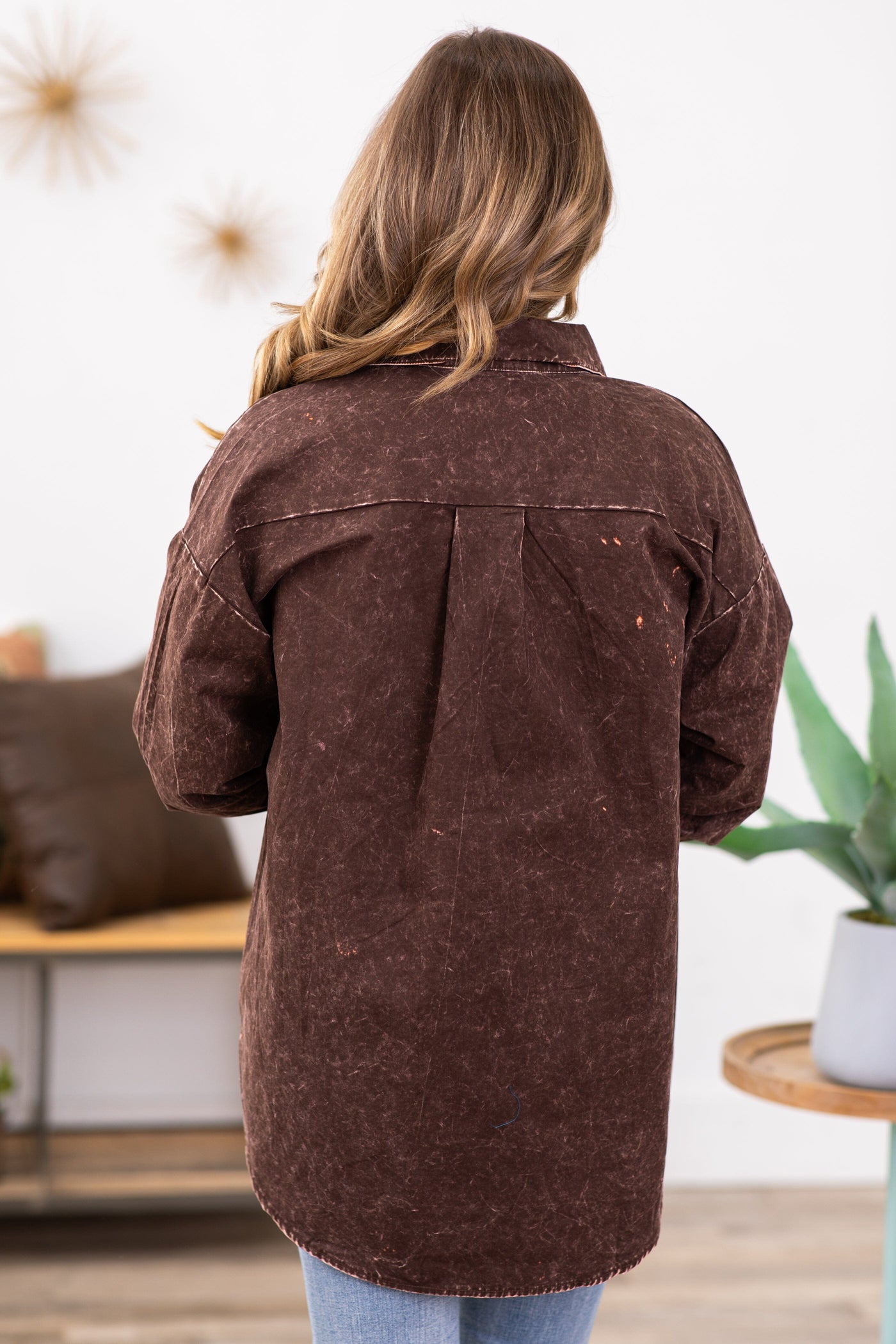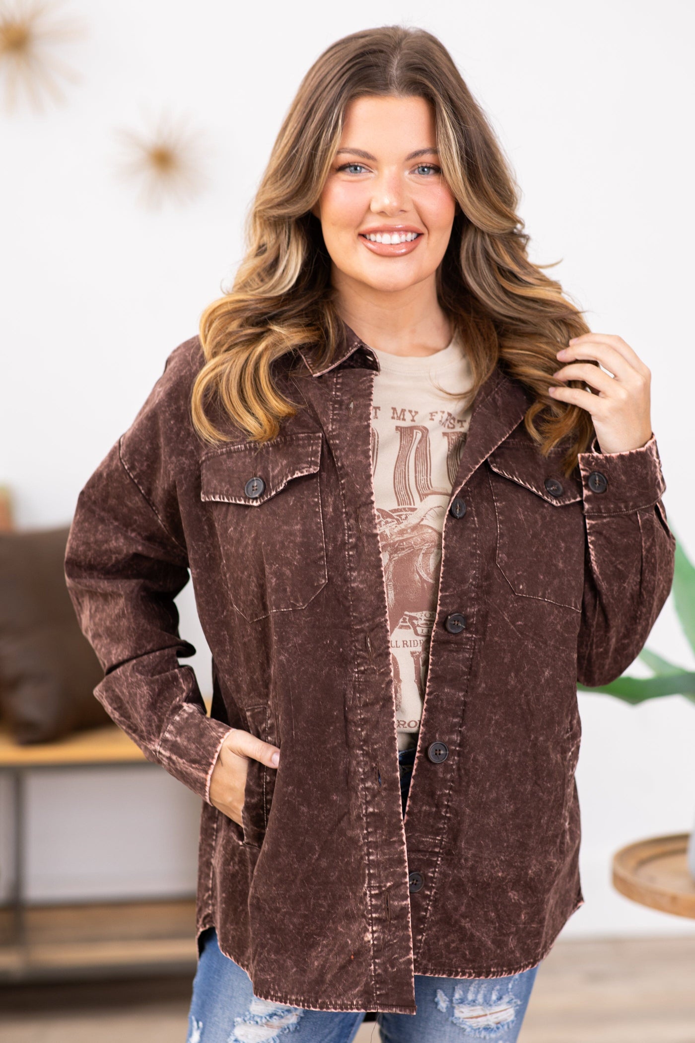 Fits true to size. The color is a rich brown and is a great color for fall. It's just the right weight for those cool mornings and evenings . Pair it with jeans for a casual look or dress it up a tad.