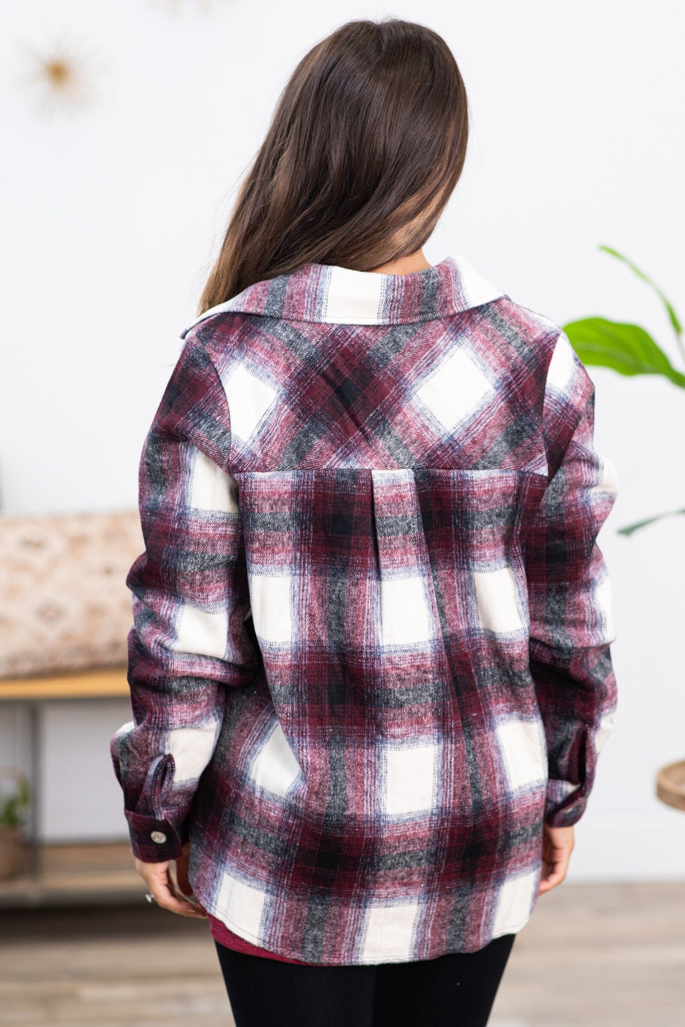 Burgundy and Off White Plaid Shacket