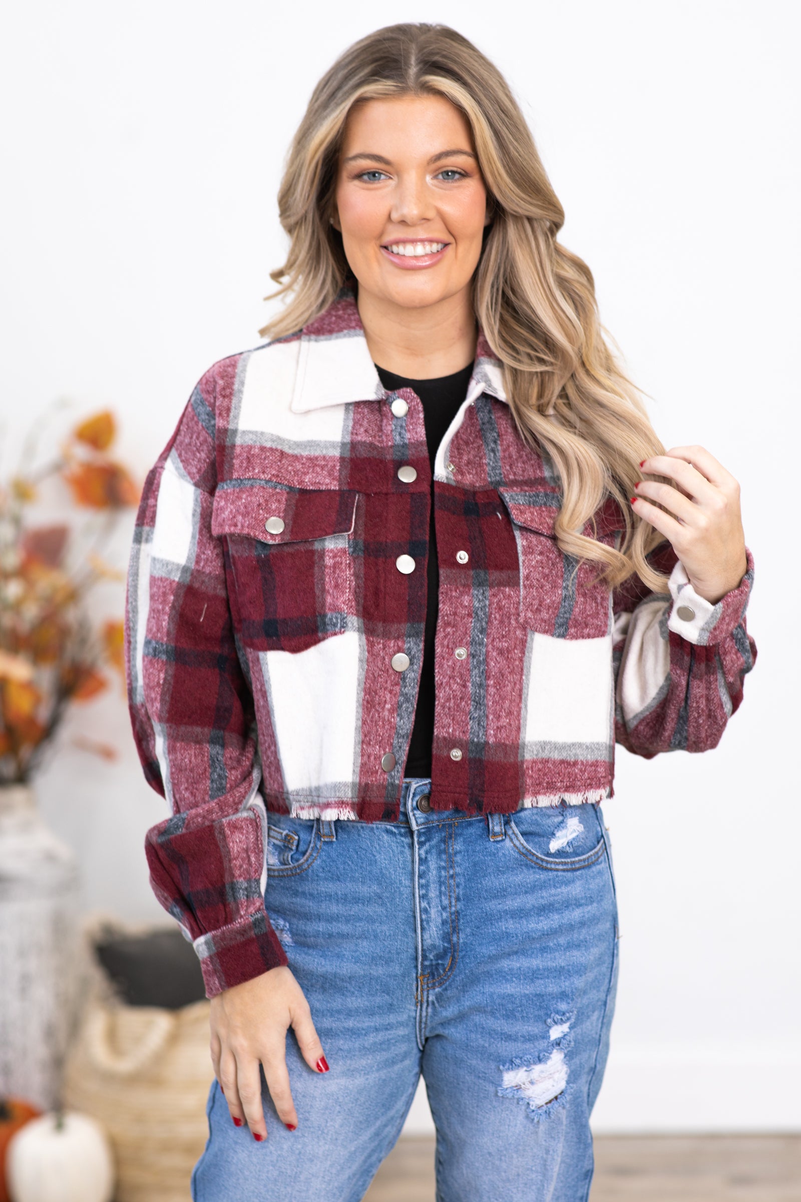 Burgundy Plaid Jacket