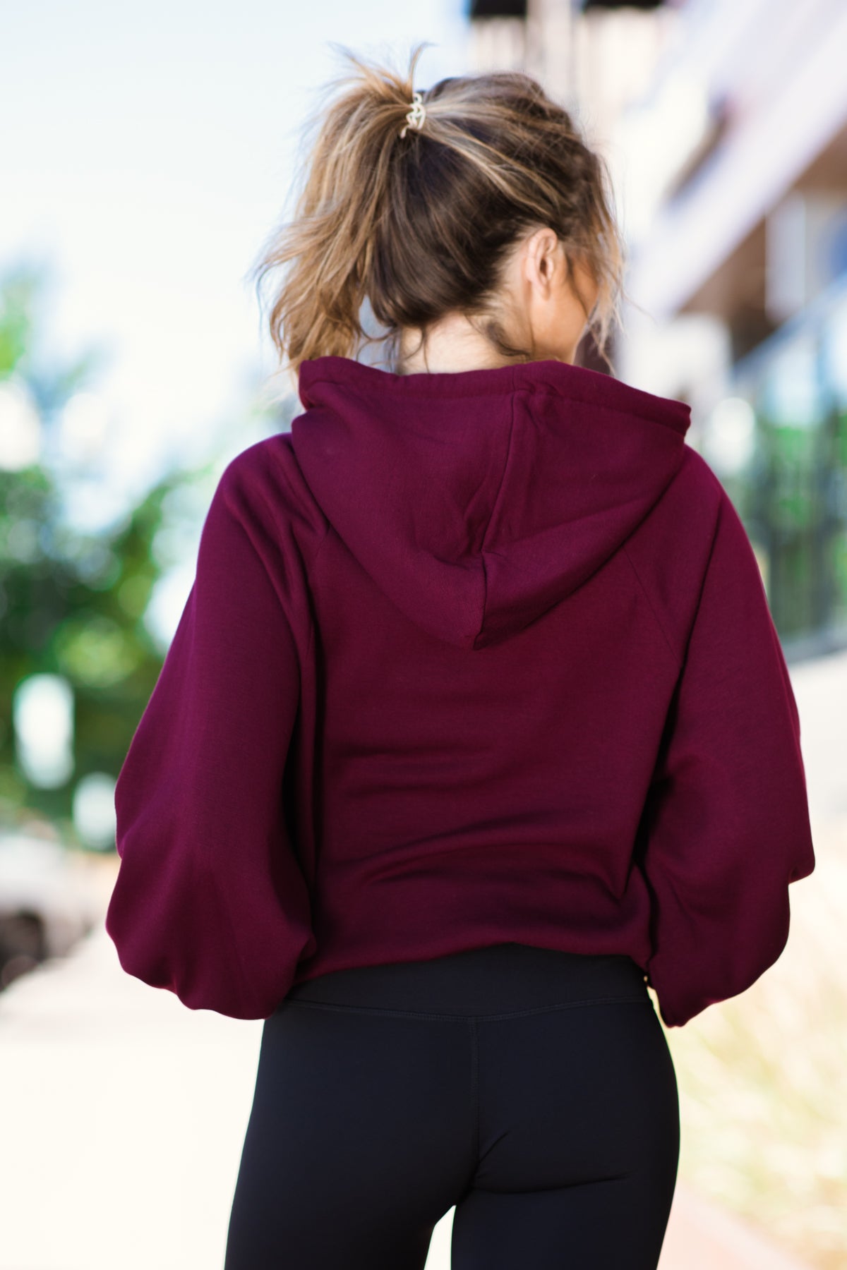 Burgundy Raglan Sleeve Hooded Sweatshirt