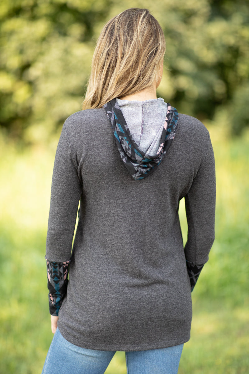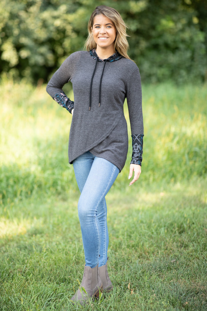 Charcoal Aztec Cuff Tulip Hem Top