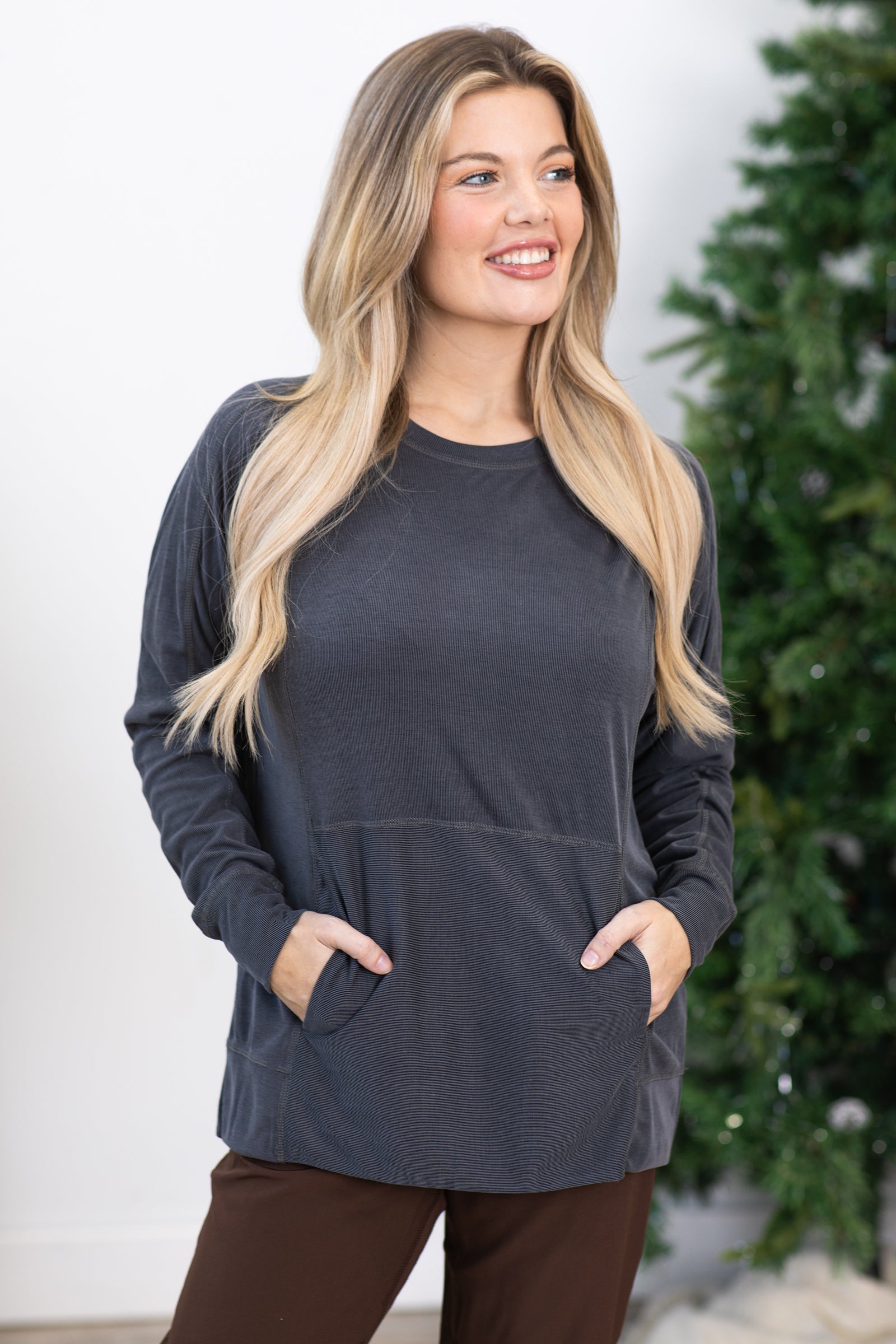 Charcoal Long Sleeve Top With Kangaroo Pocket