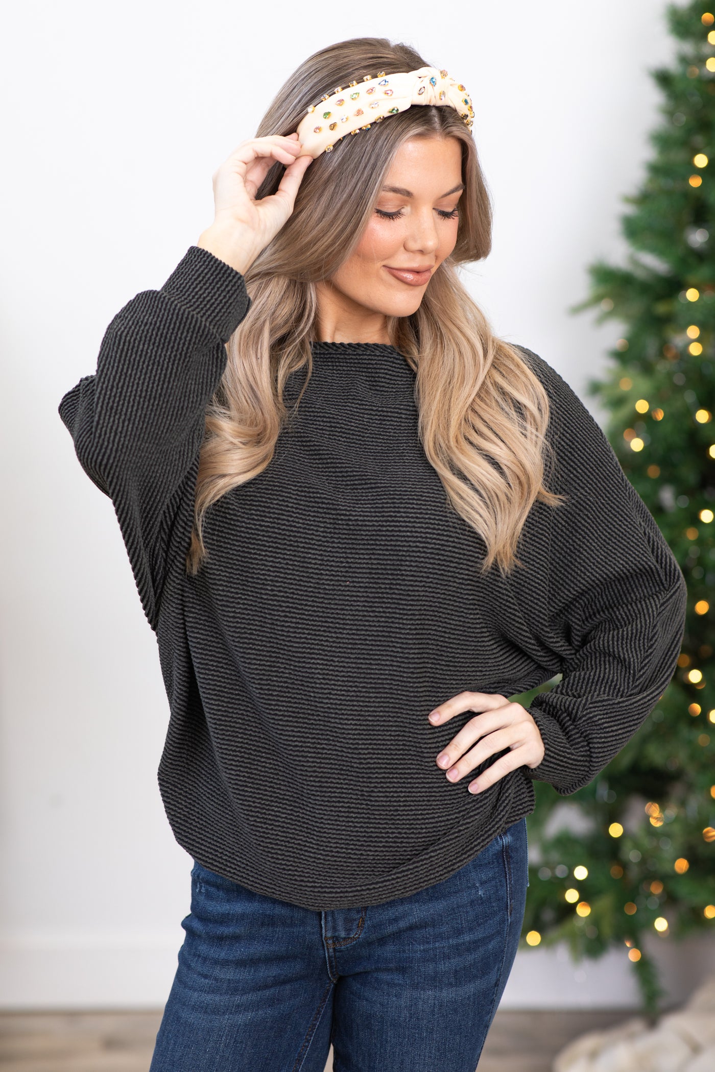 Charcoal Ribbed Dolman Sleeve Top