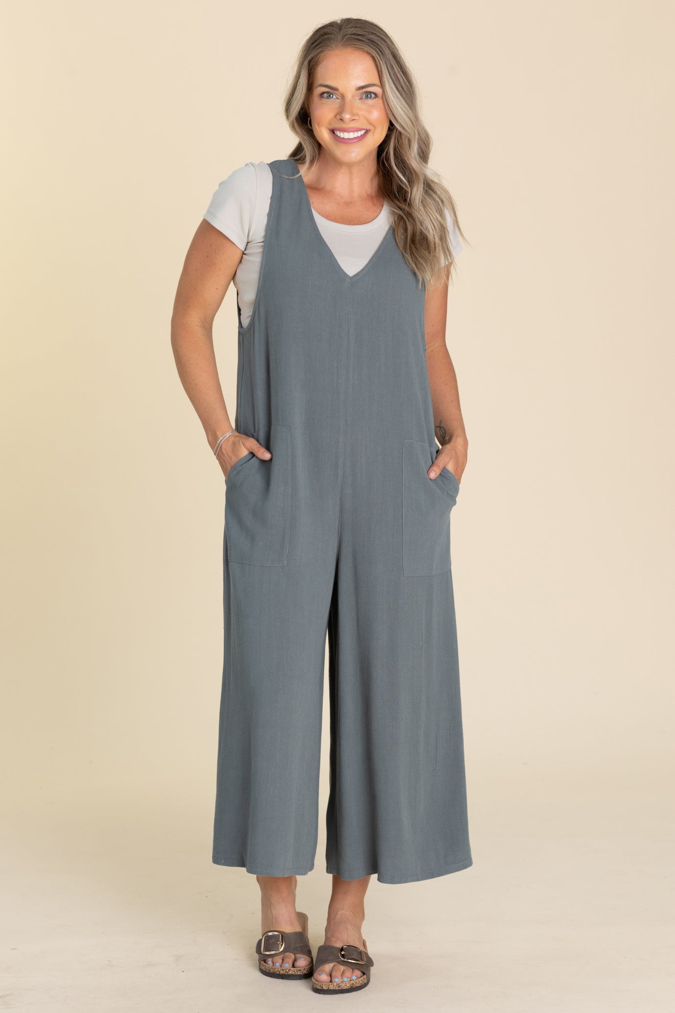Charcoal Solid Crop Jumpsuit