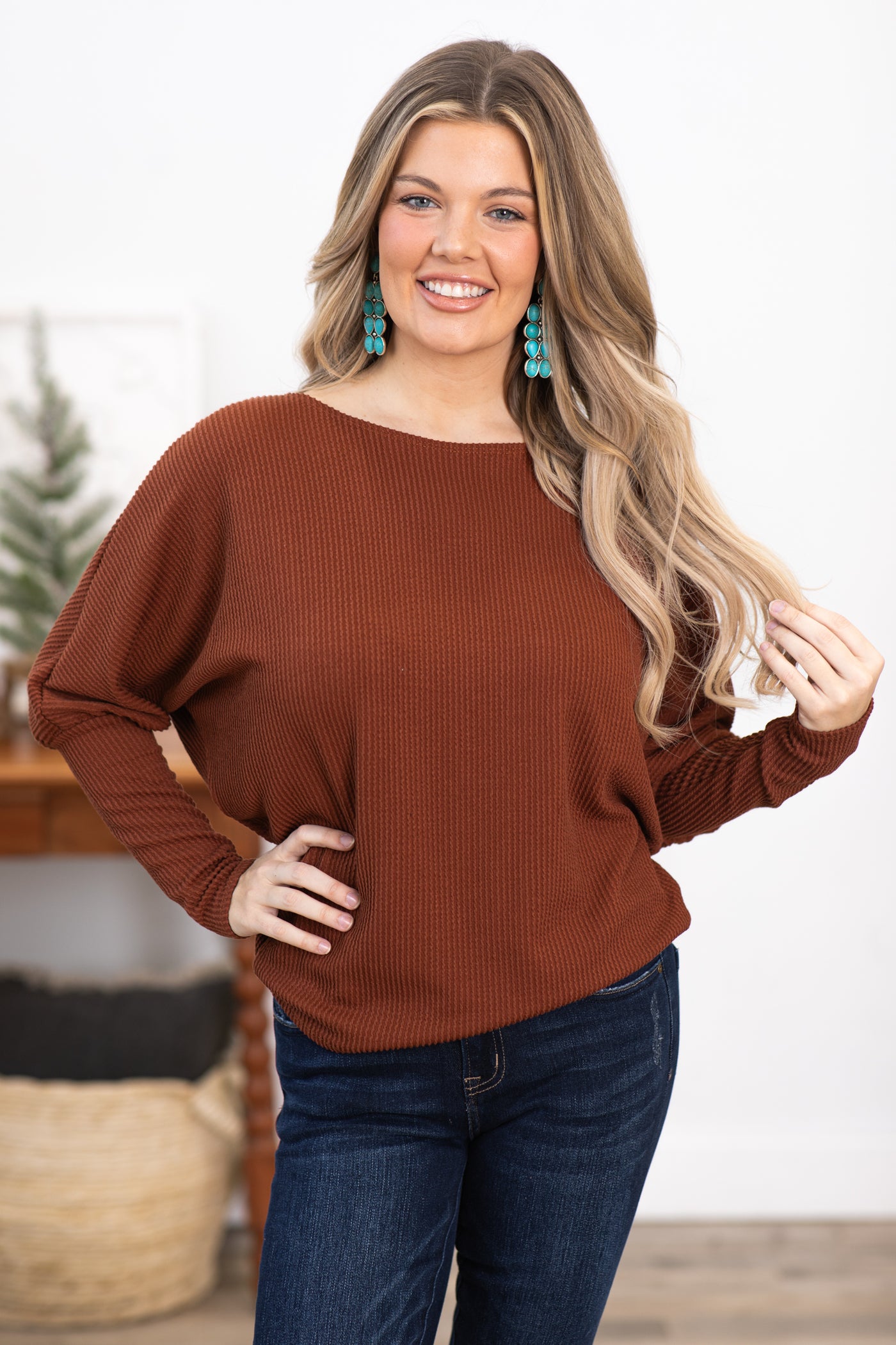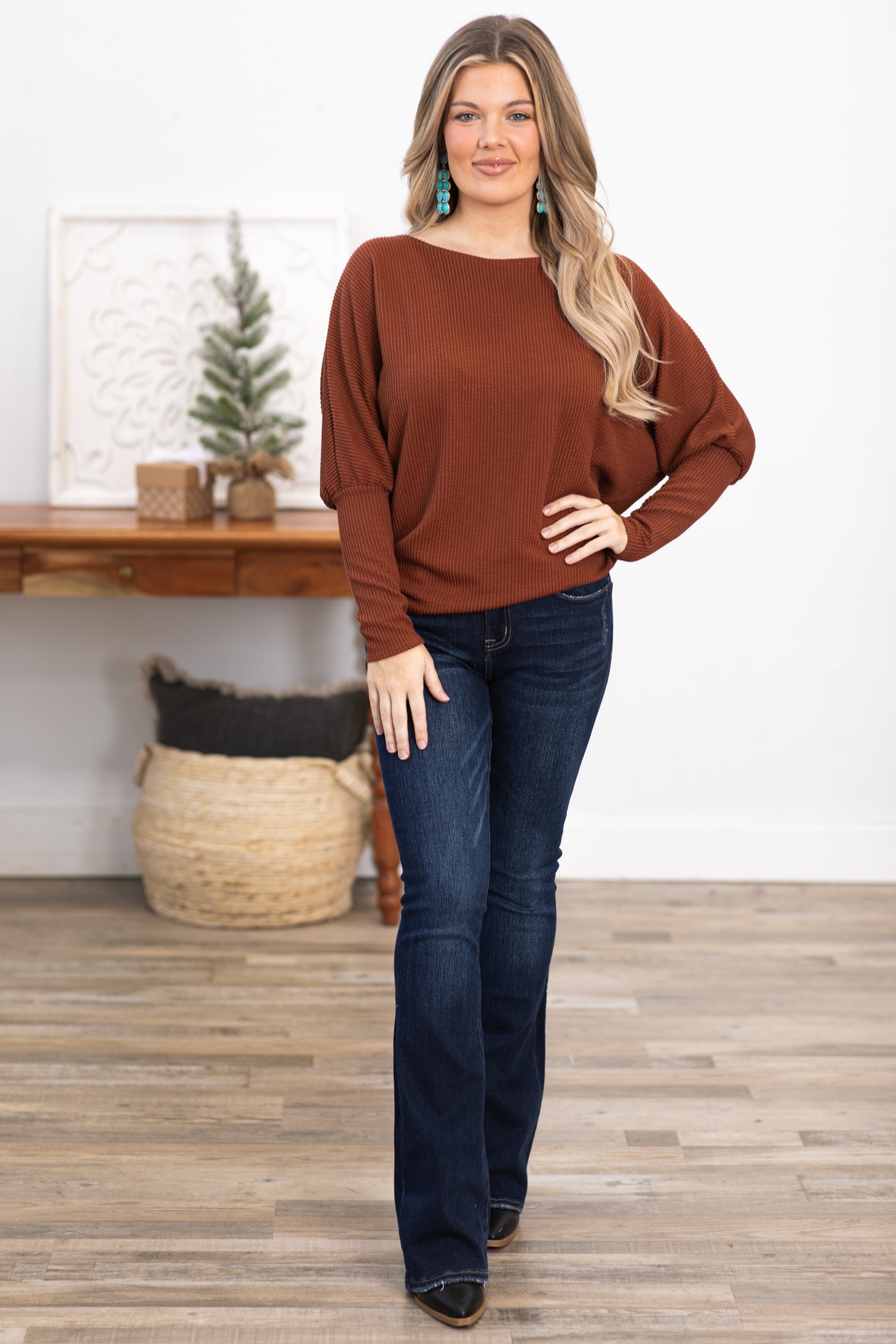 Chestnut Boat Neck Dolman Sleeve Top