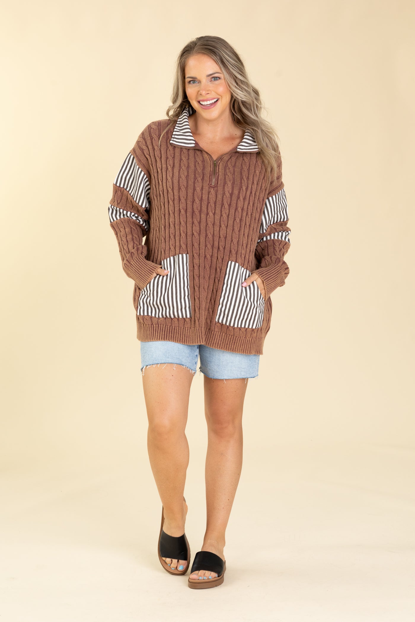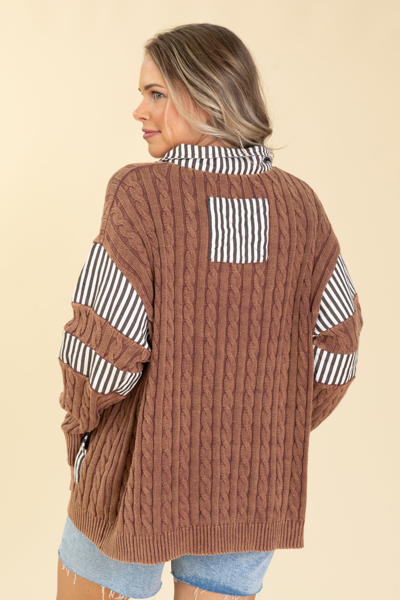 Collar Neck Cable Knit Sweater Top