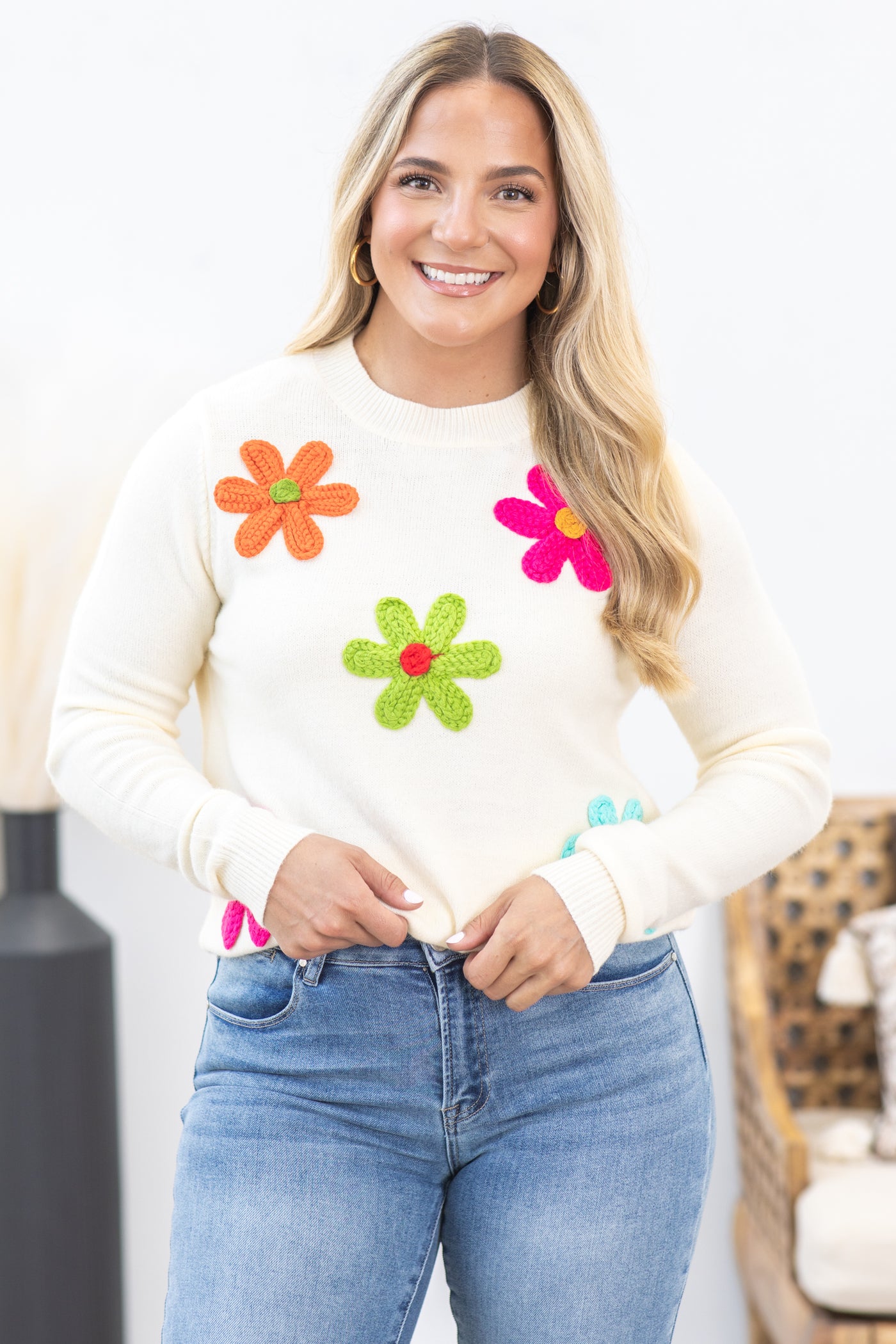 Cream Floral Patch Sweater