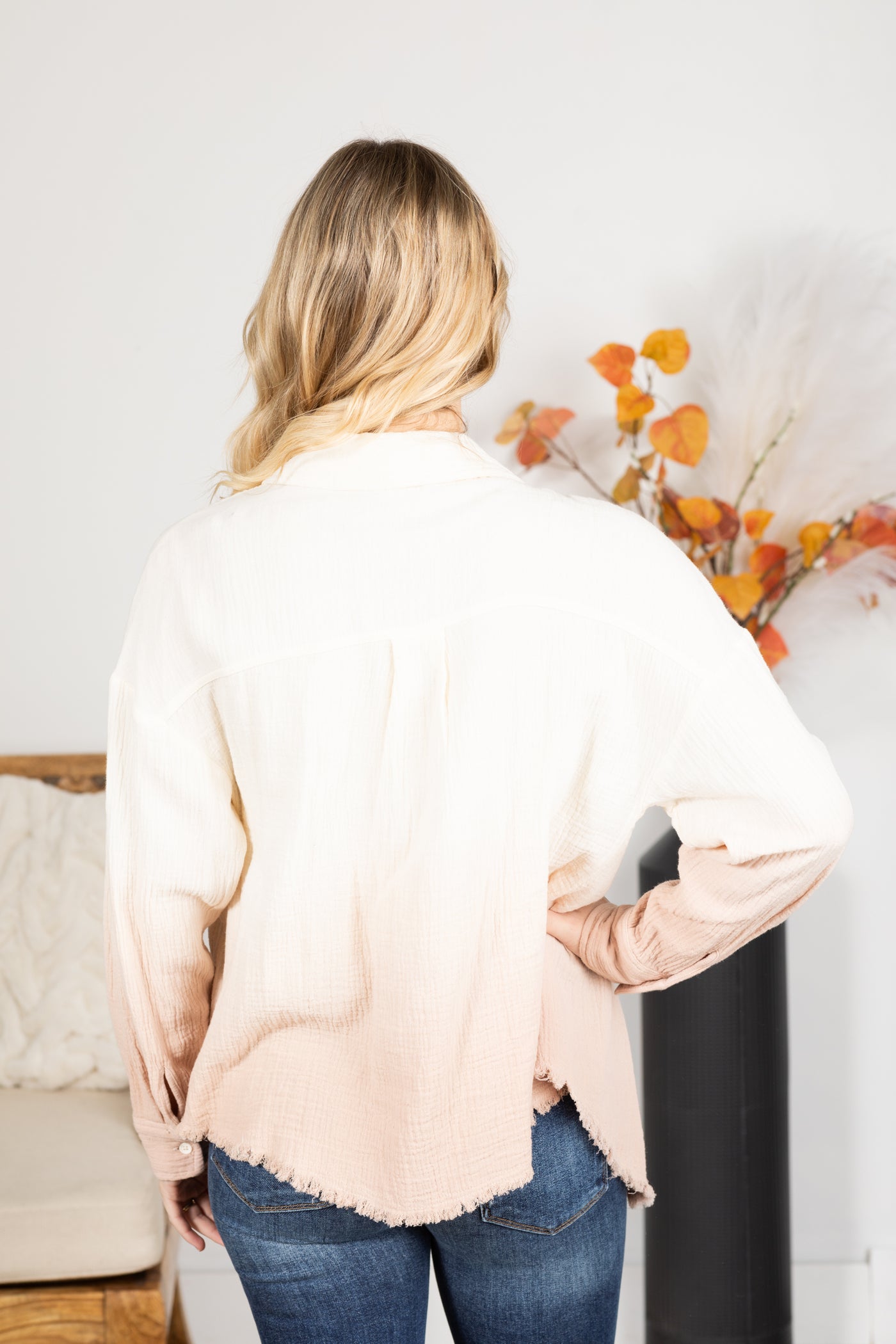 Cream Ombre Button Up Woven Top
