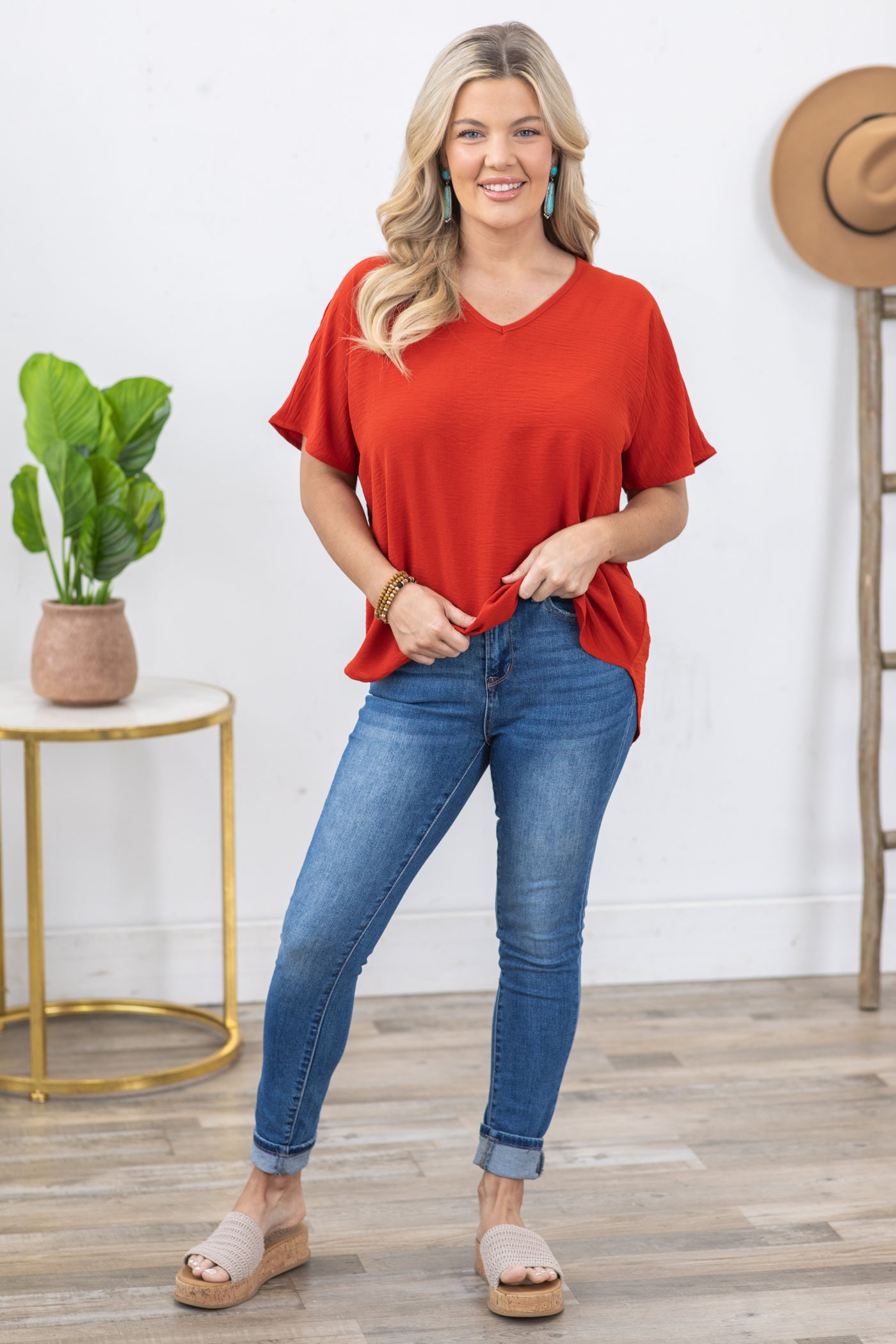Beautiful warm red top! Perfect to wear with just about any bottom and to dress up or down 🙌🏽
