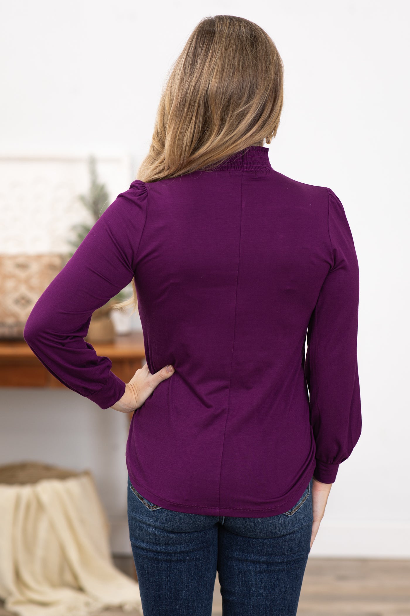 Dark Berry Smocked Turtleneck Top
