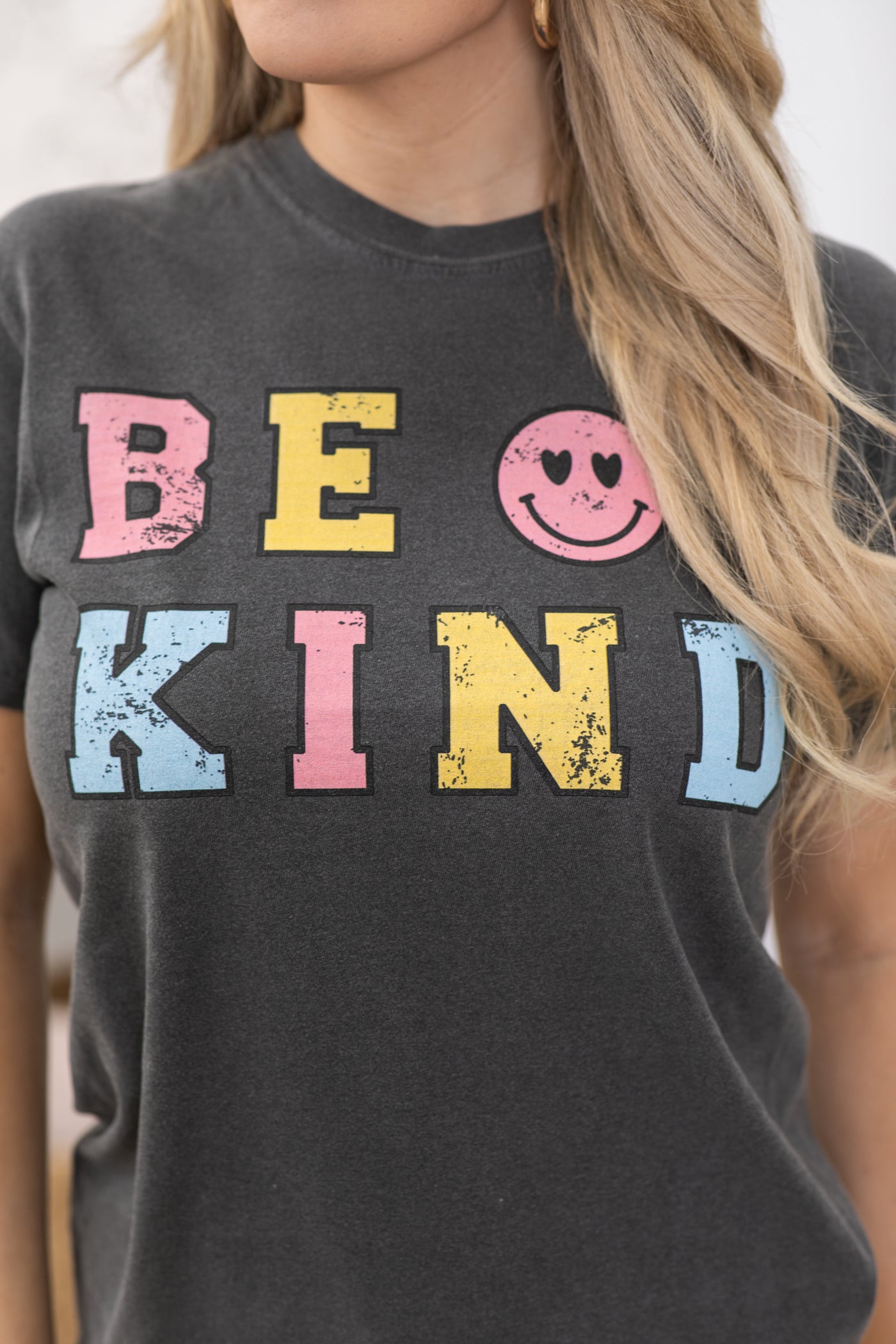 Dark Grey Mineral Wash Be Kind Graphic Tee