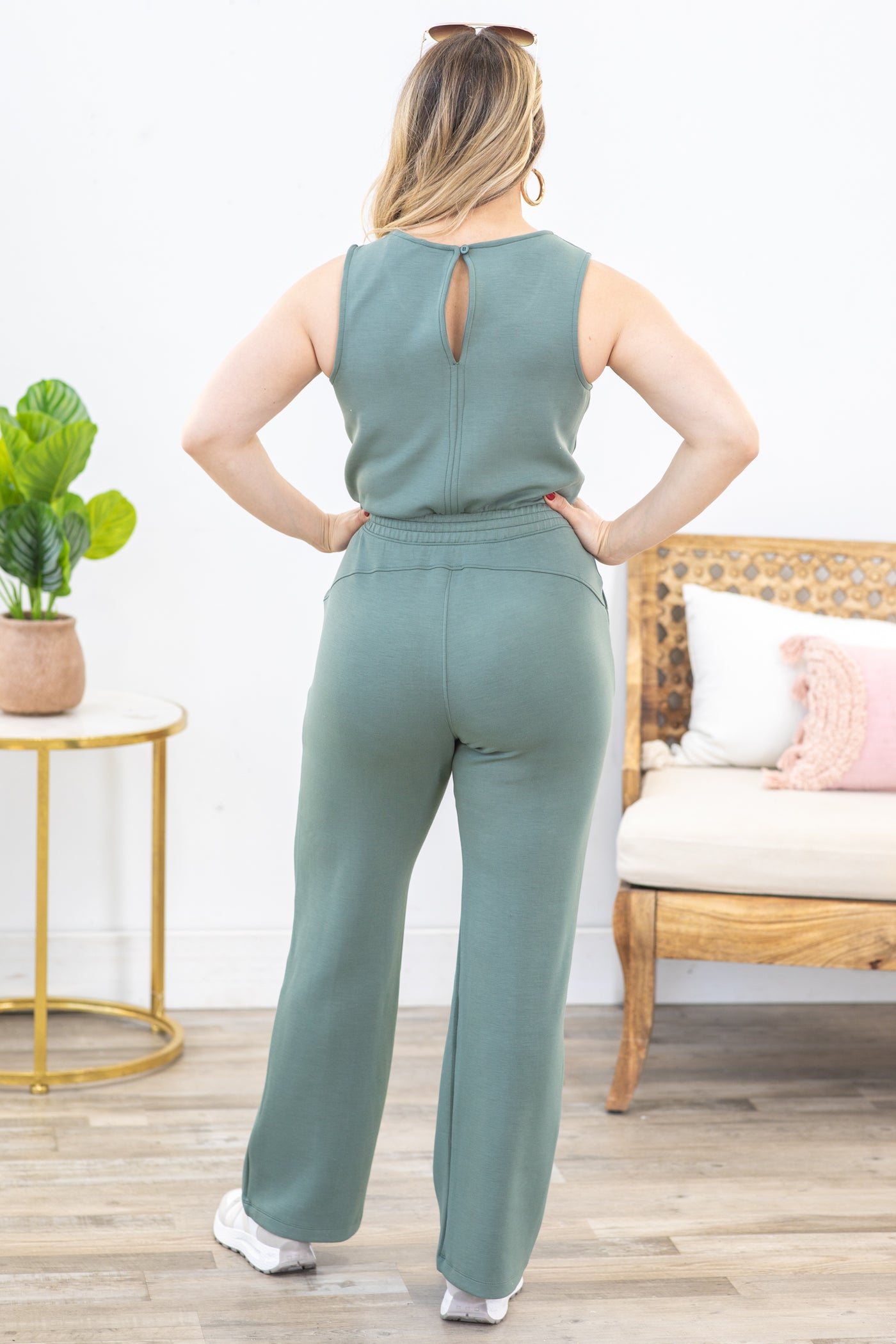 Dusty Green Modal Scuba Luxury Jumpsuit