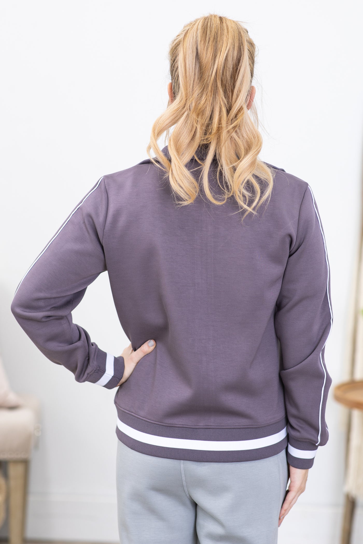 Dusty Purple Retro Stripe Full Zip Sweatshirt