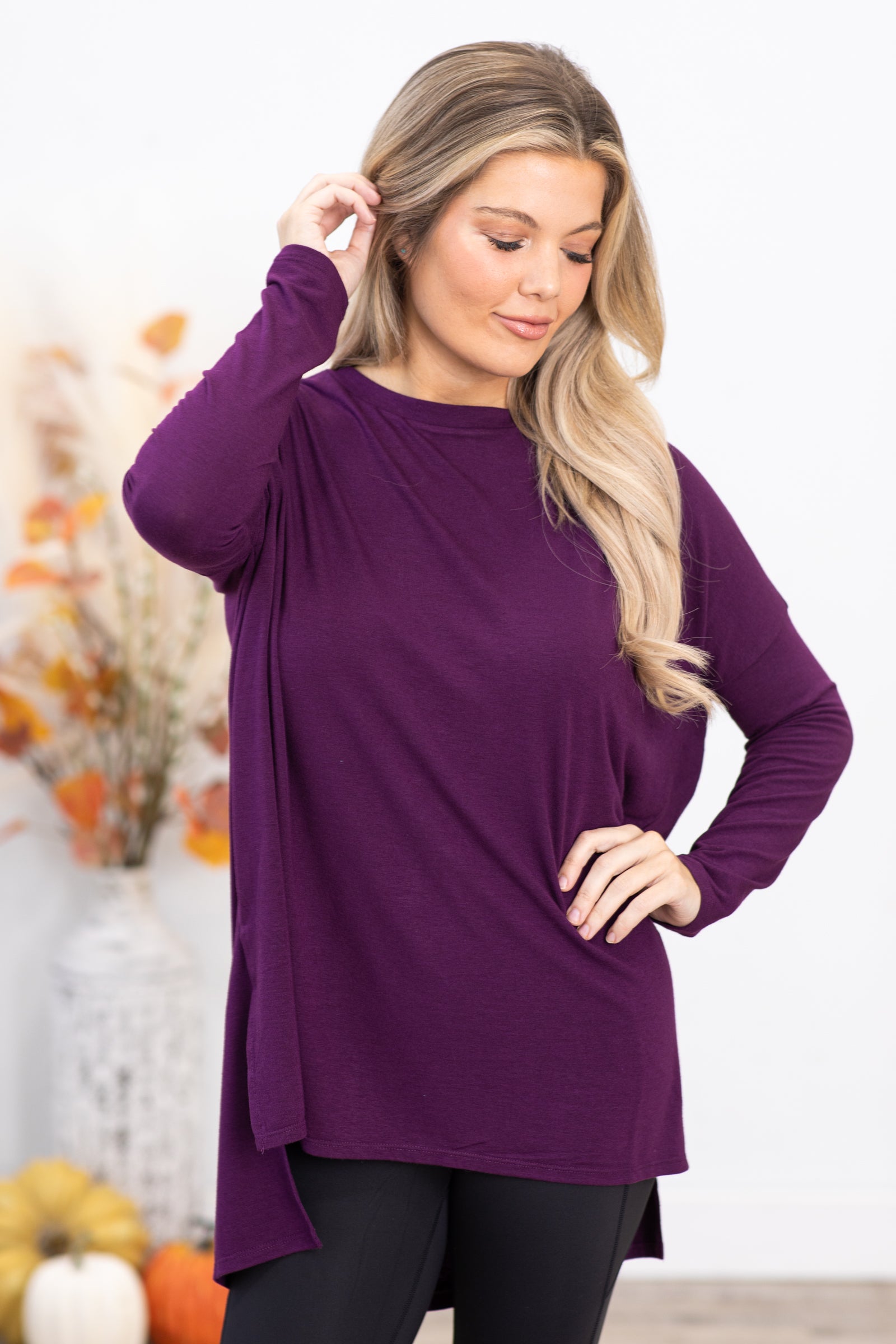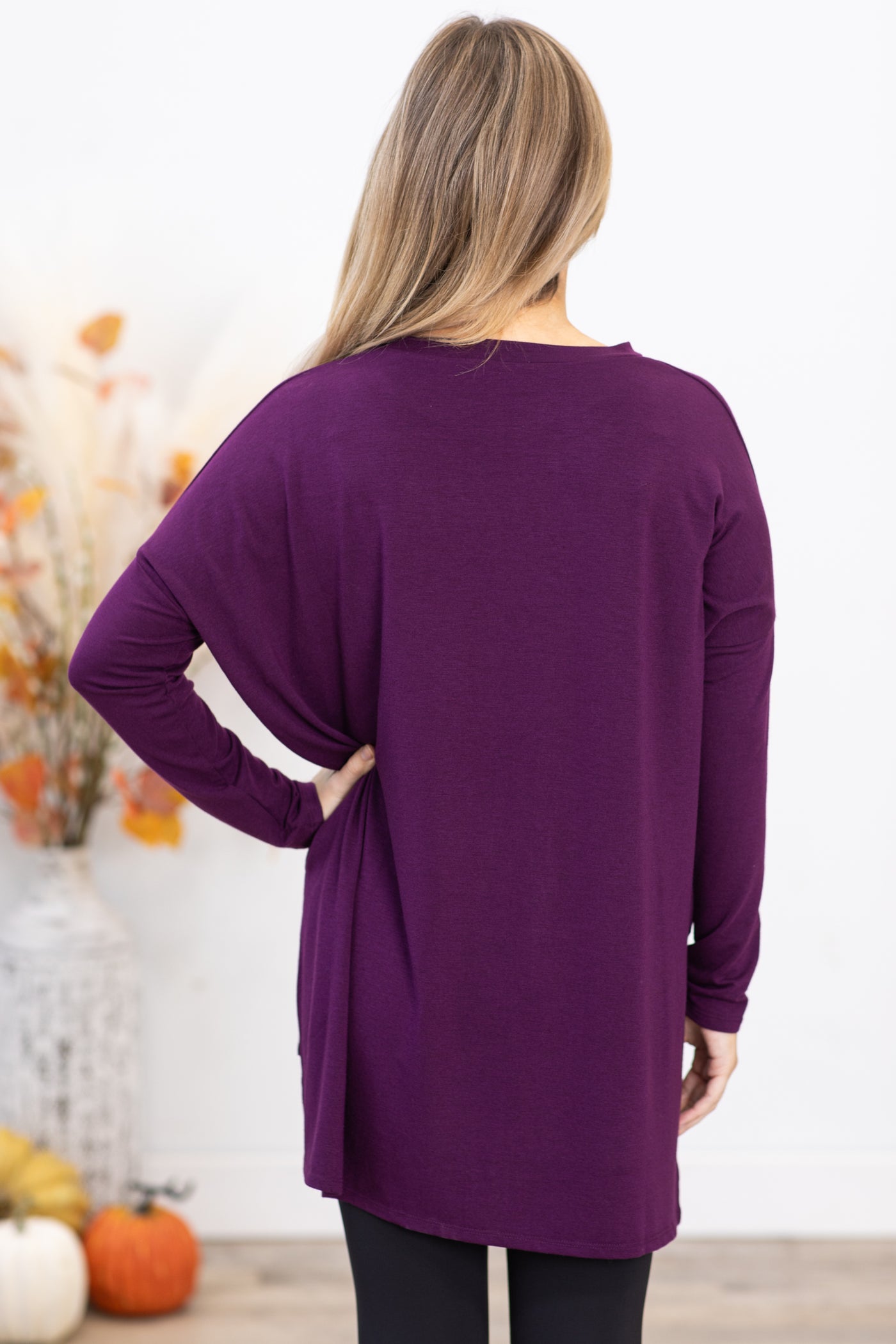 Eggplant Dolman Sleeve Top With Side Slit