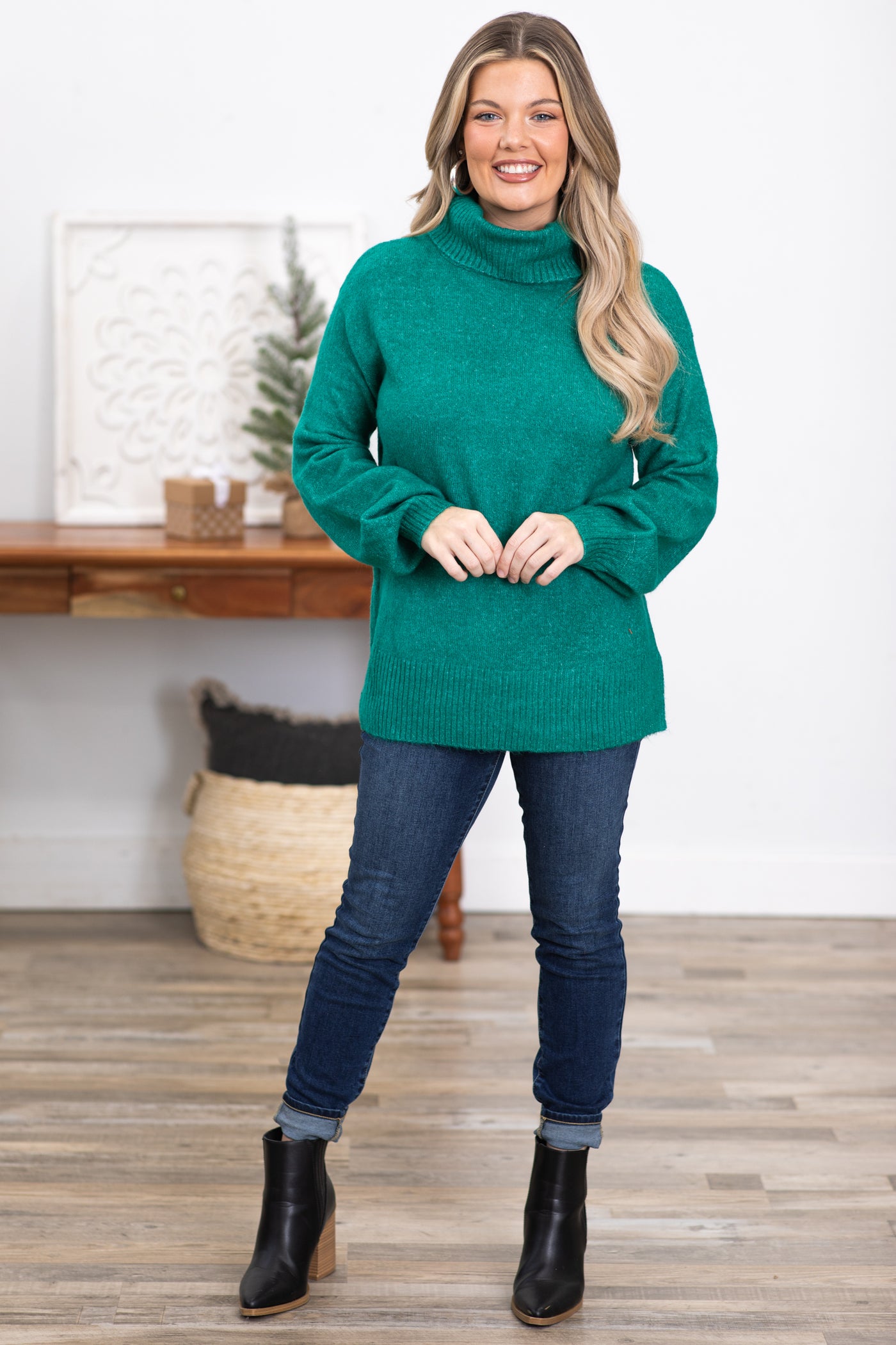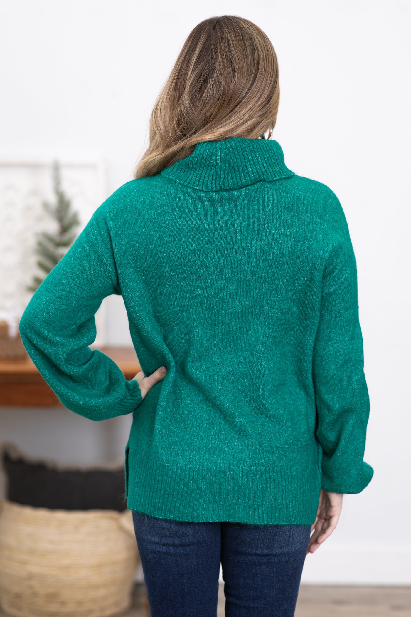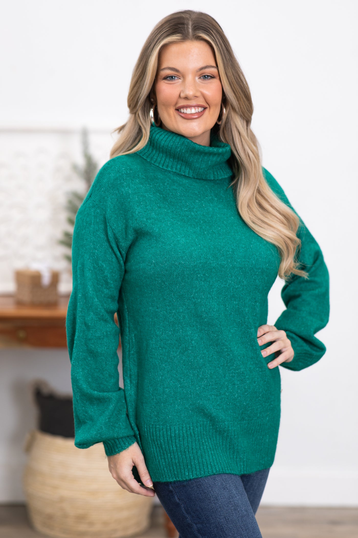 Emerald Balloon Sleeve Turtleneck Sweater
