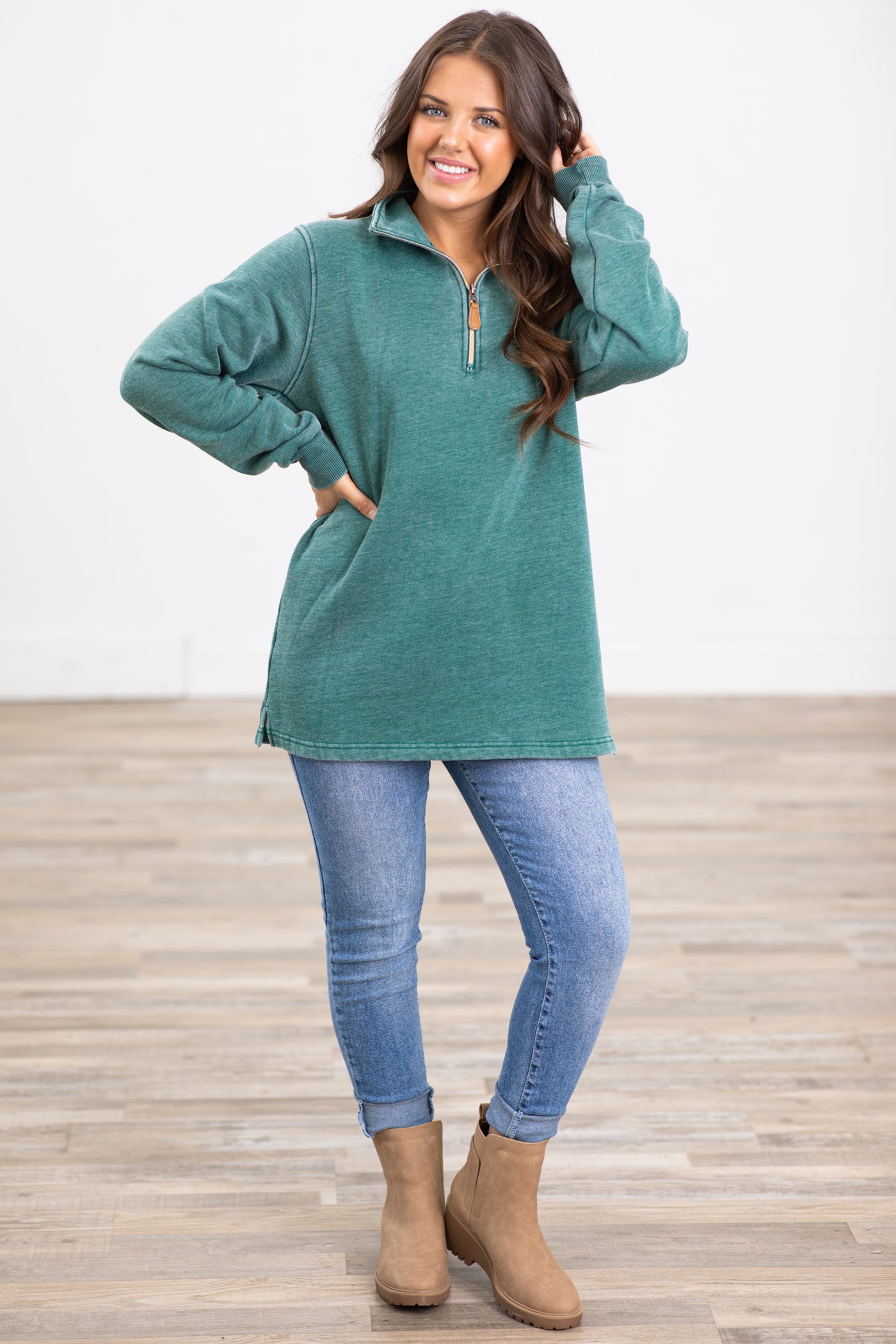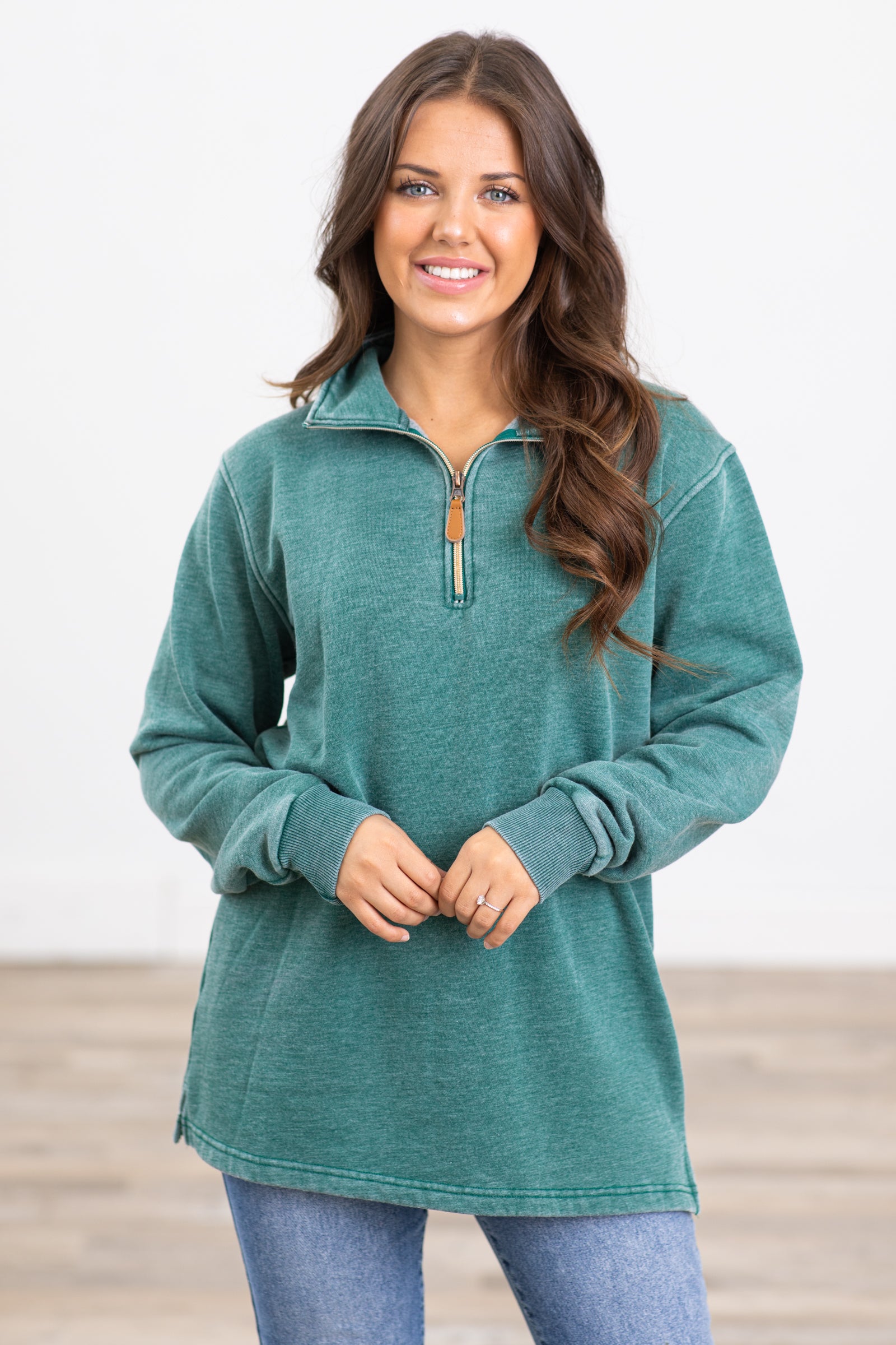 Emerald Fleece Pigment Dyed 1/4 Zip Pullover