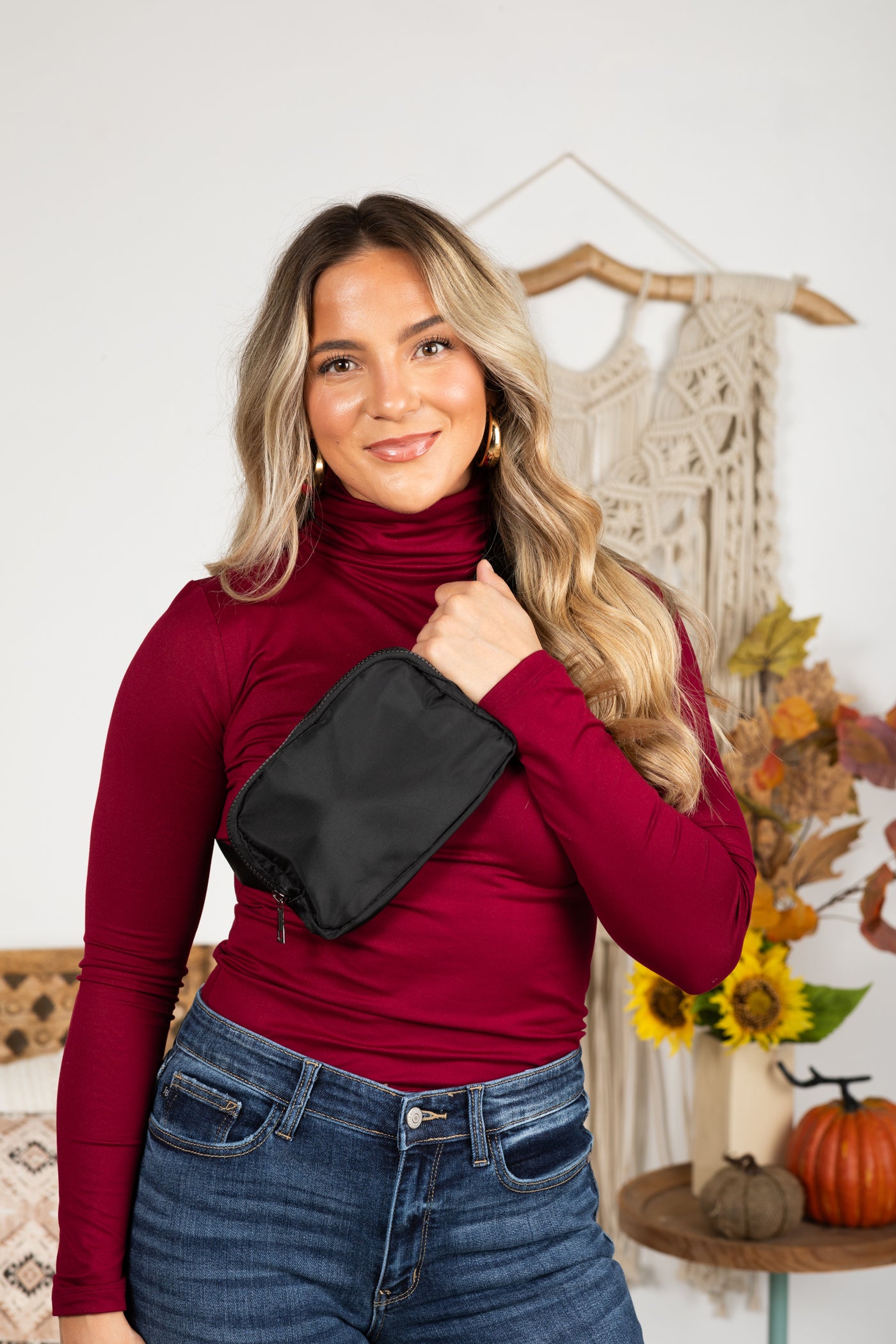 • Other Details: 1 main zipper closure crossbody bag with back zipper pocket and adjustable strap with buckle closure. 3 open inside pockets.