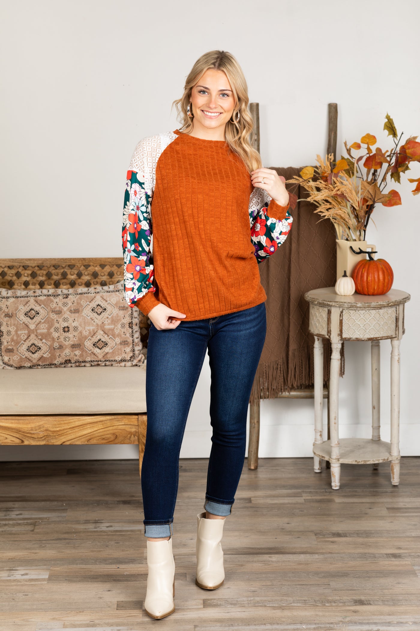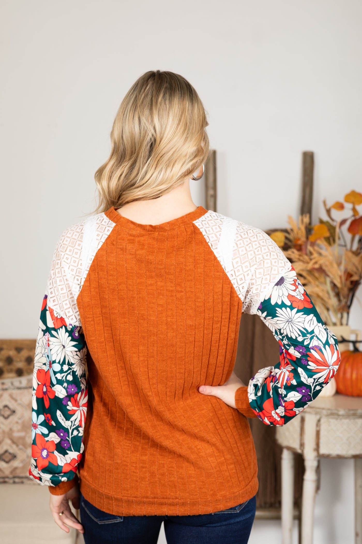 Floral Patchwork Raglan Sleeve Knit Top